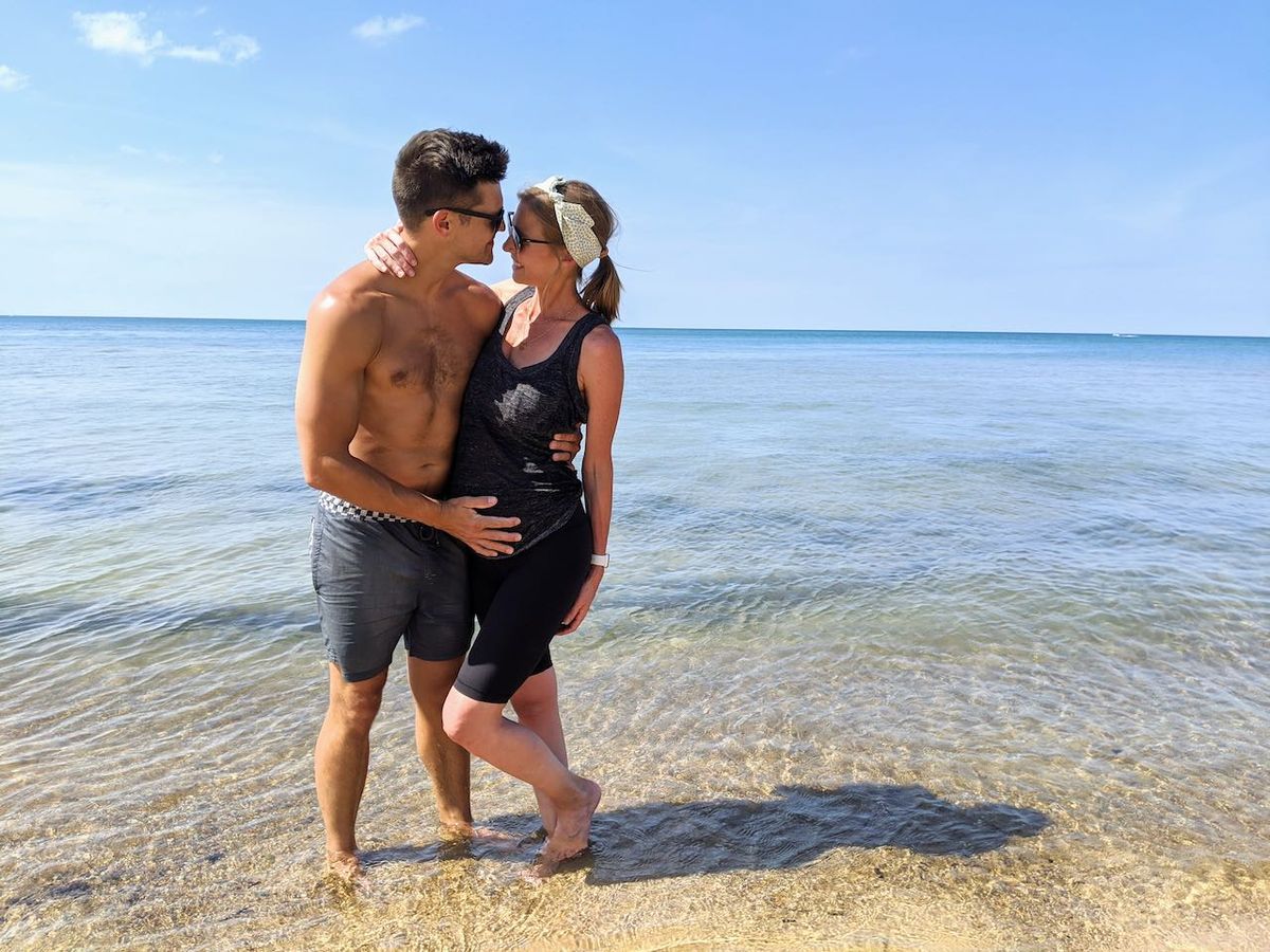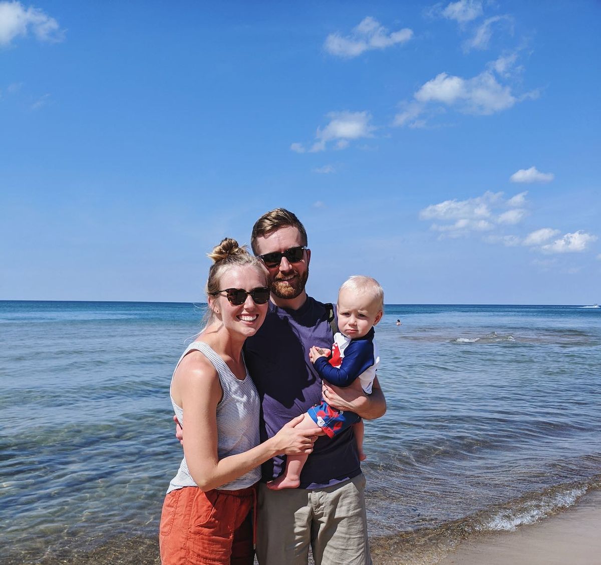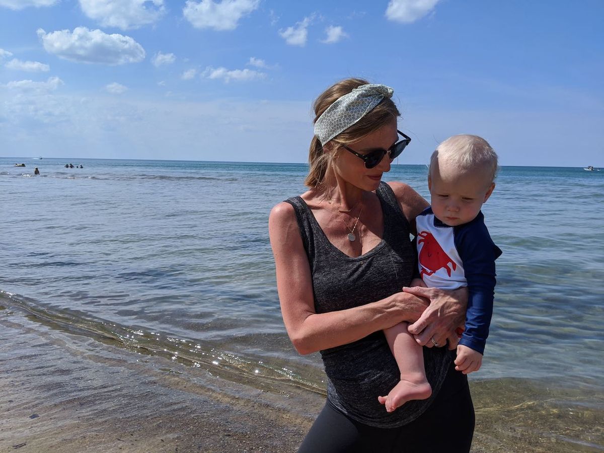 After driving for a time in queue, we parked and headed straight for the water, all four adults taking our chacos off to feel the water and sand on our feet. We carried Cooper, taking turns. We walked along the water to a more open area of the beach, then let Cooper play in the water, doing our best to minimize how much sand he was eating. Casey took him out a little bit further and he loved the water, even purposely splashing his face in multiple times. We walked some more, chatted about their growing family(!), snapped a few photos, and waded in the water which actually felt warm. And on the walk back, we took turns carrying a very sleepy Cooper. He rested his head on Lauren's shoulder and gripped a rock in his tiny hand all the way back to the truck, and for the entire drive home. Oh to see a Great Lake through a little boy's eyes, and to find such joy from a rock.