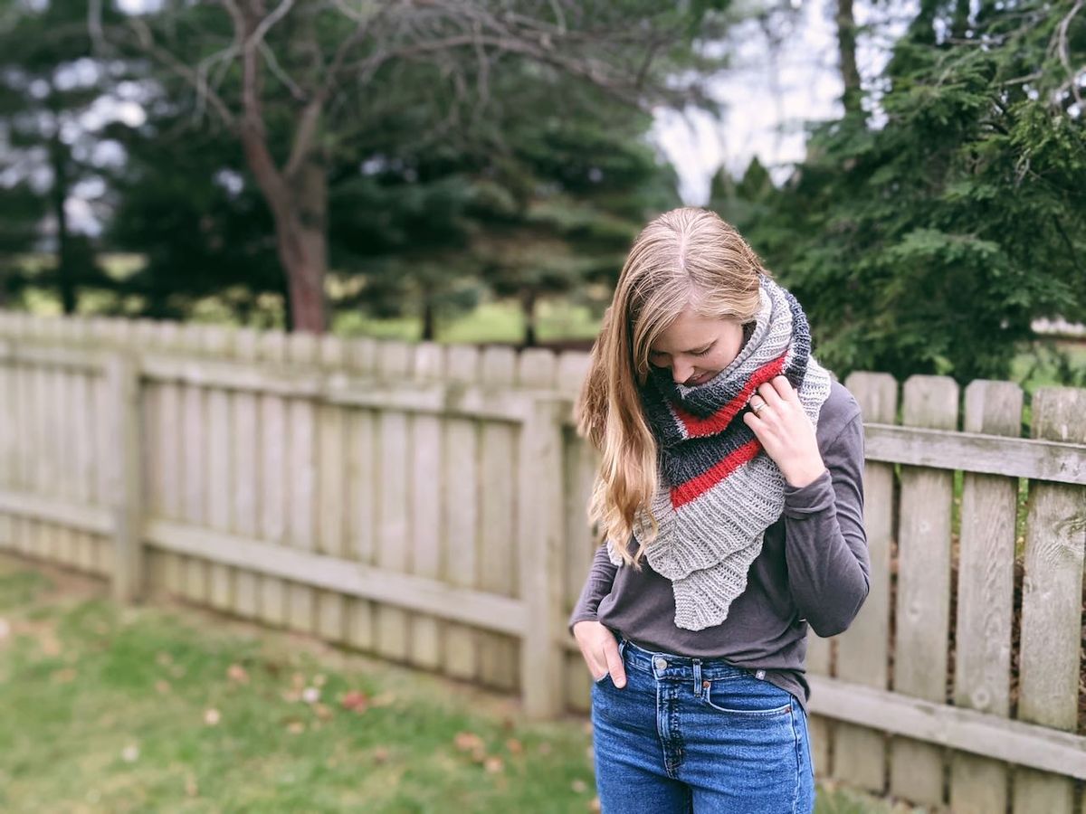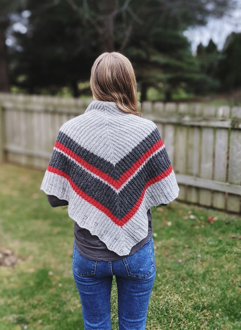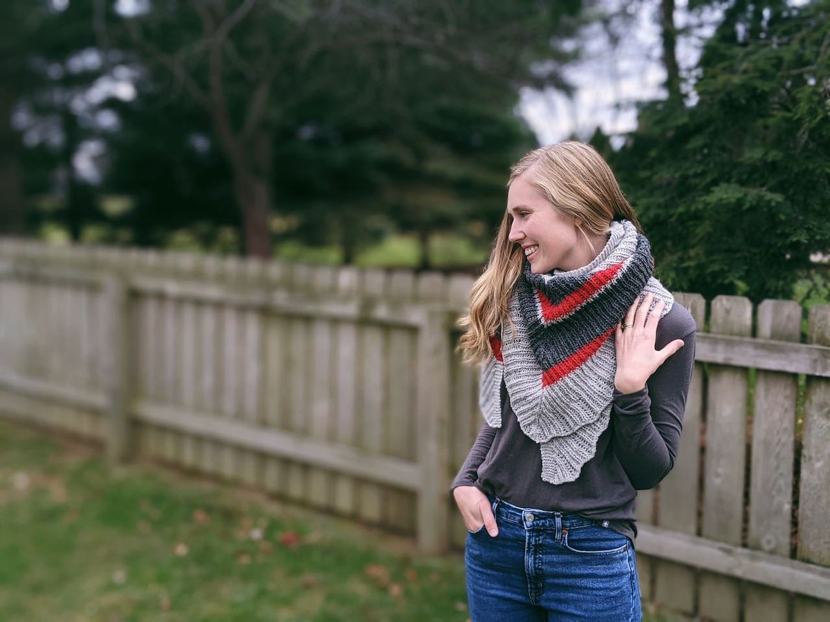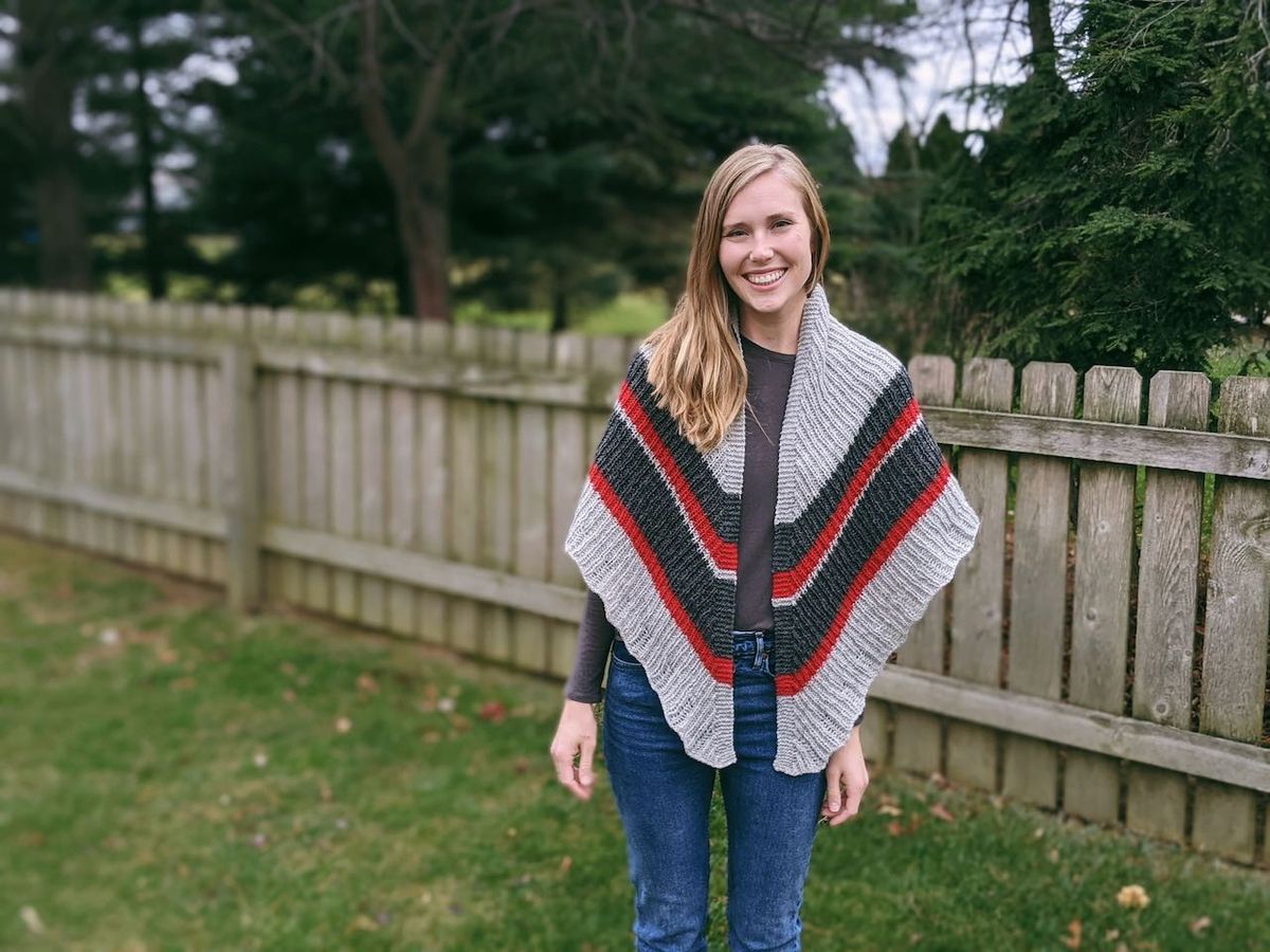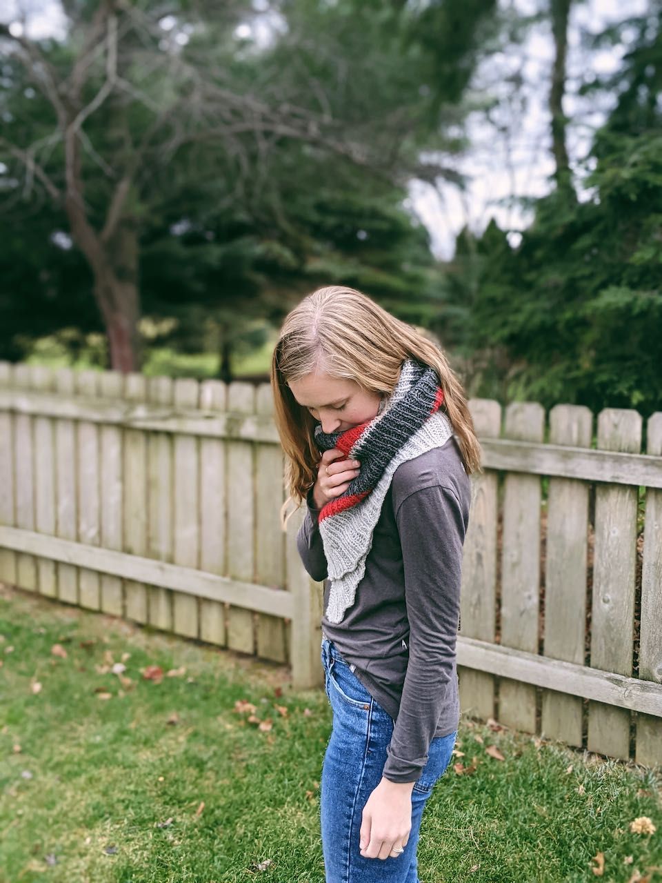 Specifics/modifications: The pattern calls for DK-weight yarn, so I choose needles that were smaller, and knit the pattern as written until gradually adding rows to each color stripe to make it larger, overall. I also knit some rows in the final color before knitting the border—rather than switching colors and immediately beginning border stitches. I did not aggressively block the border on the shawl, and I'm fine with a more subtle scalloped edge.