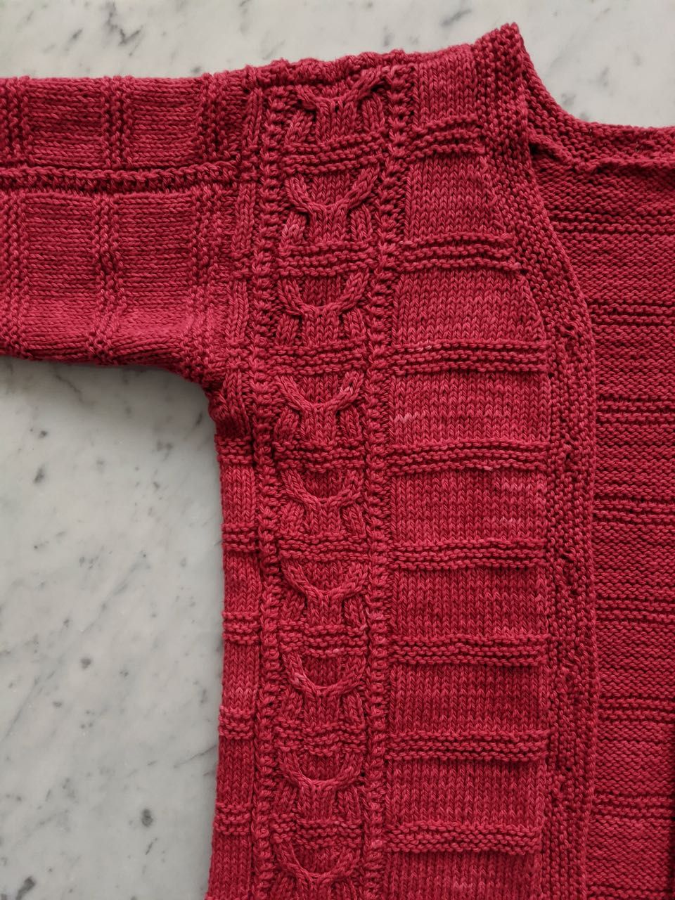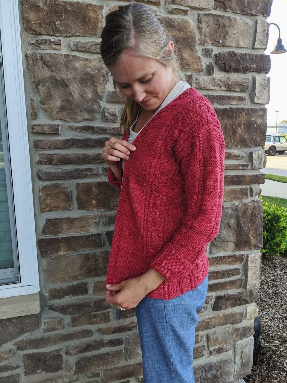 Specifics/modifications: All the details are on my ravelry (linked above), but I knit the size the yarn company designated (likely one size up from what I would typically knit for myself). I did use Barbara G. Walker's one-row buttonhole for a cleaner finish for the buttonholes in the button band.