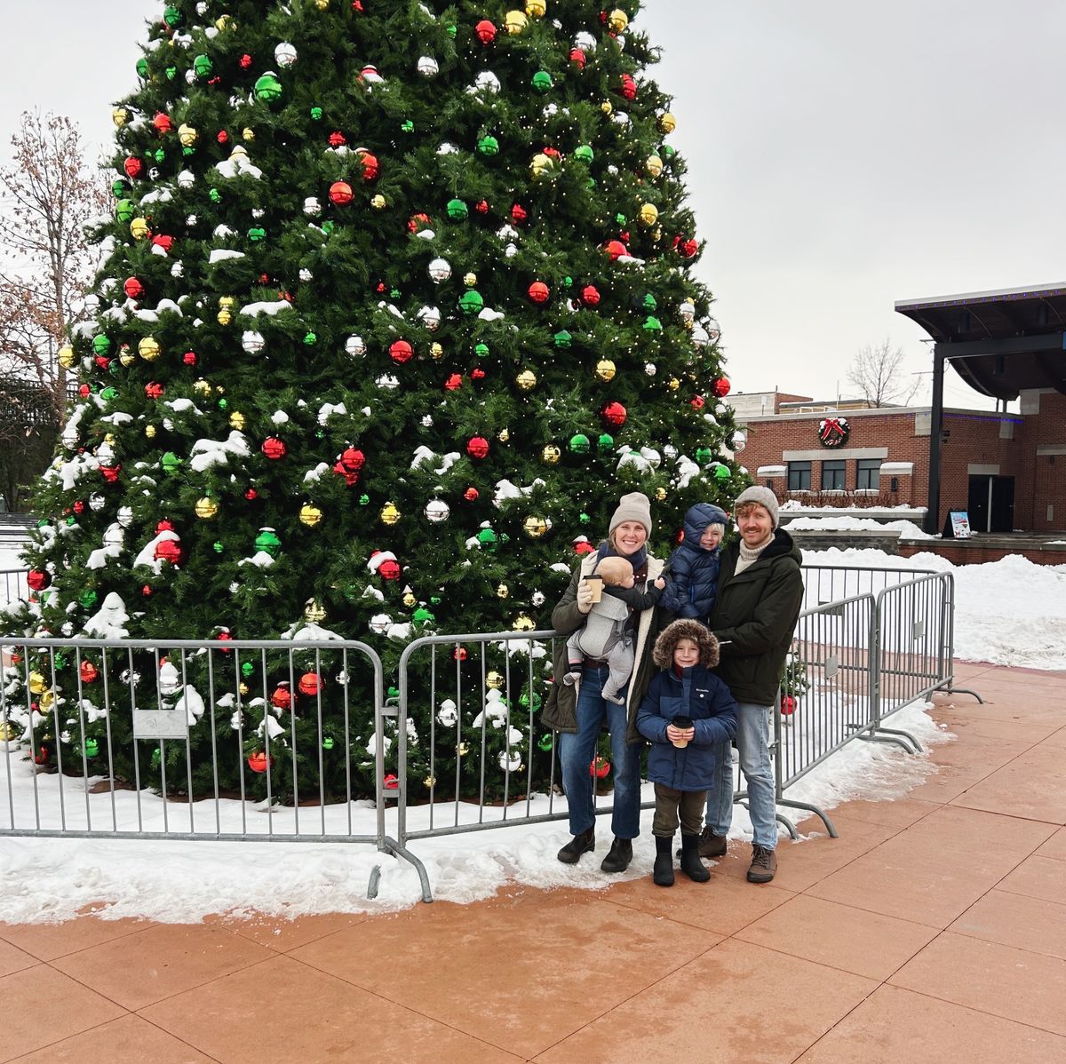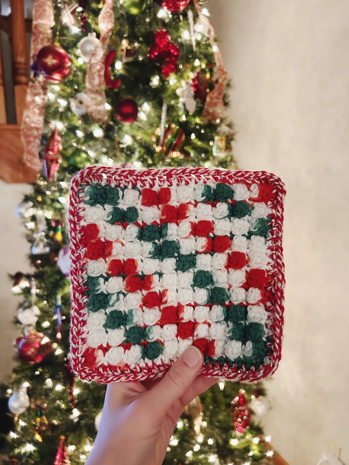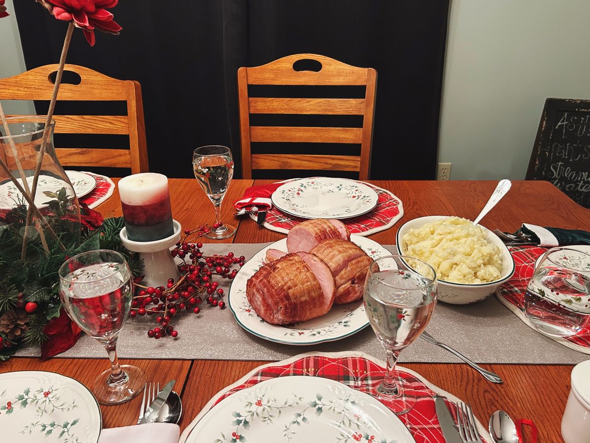 We had sourdough cinnamon scones and chocolate crinkle cookies and coffee in the afternoon, and I frantically crocheted on a Christmas potholder for my SIL, Katelyn (not telling her that it was for her until I finished it). And then we prepared dinner – a ham, mashed potatoes, stuffing, sourdough dinner rolls I baked earlier in the day, and steamed carrots. It was all delicious and after cleaning up and a little more visiting, we headed home, driving past some Christmas lights (but only briefly, because Arlo was more than ready to be home and out of his carseat).