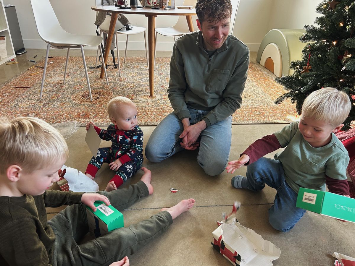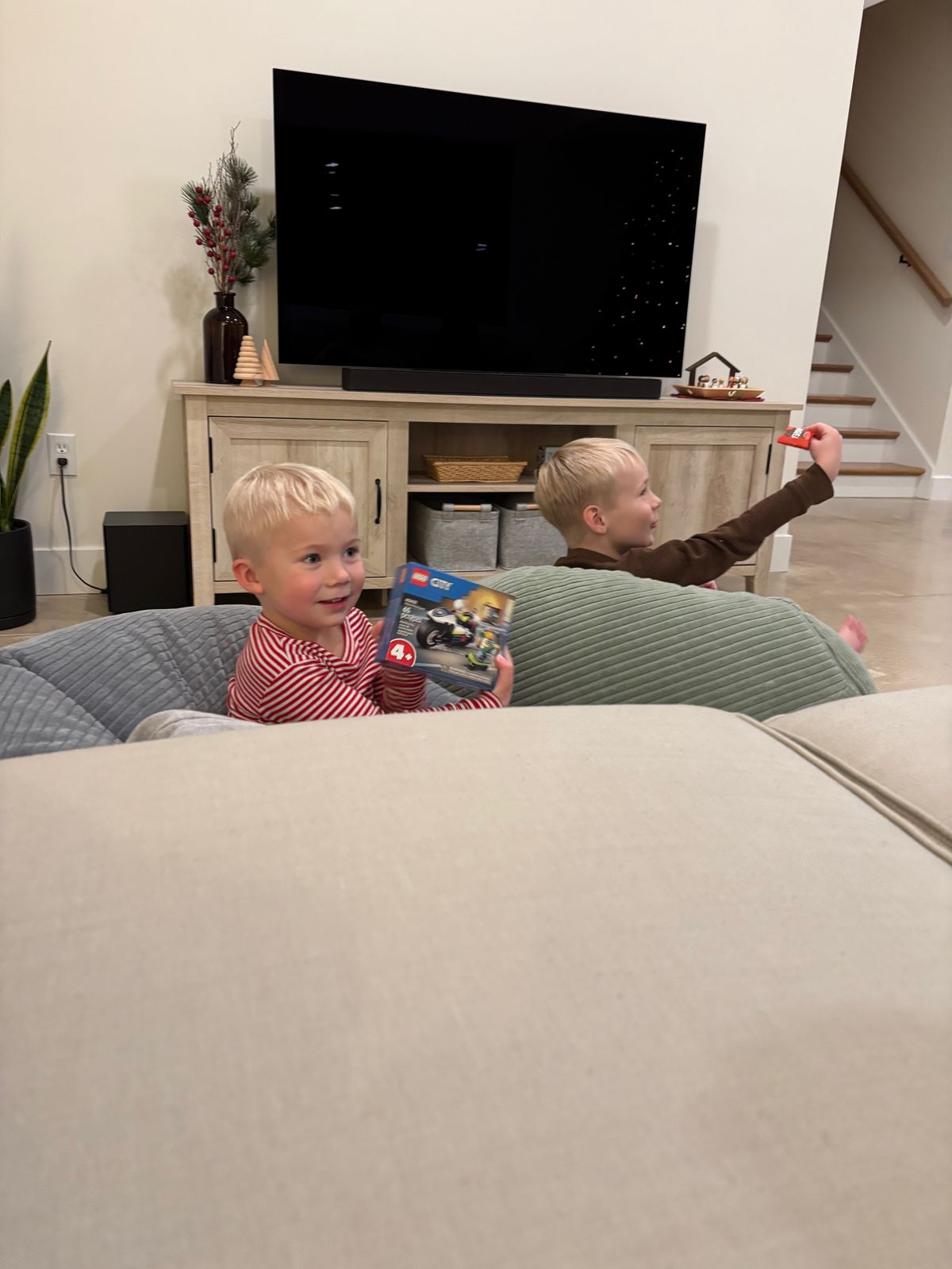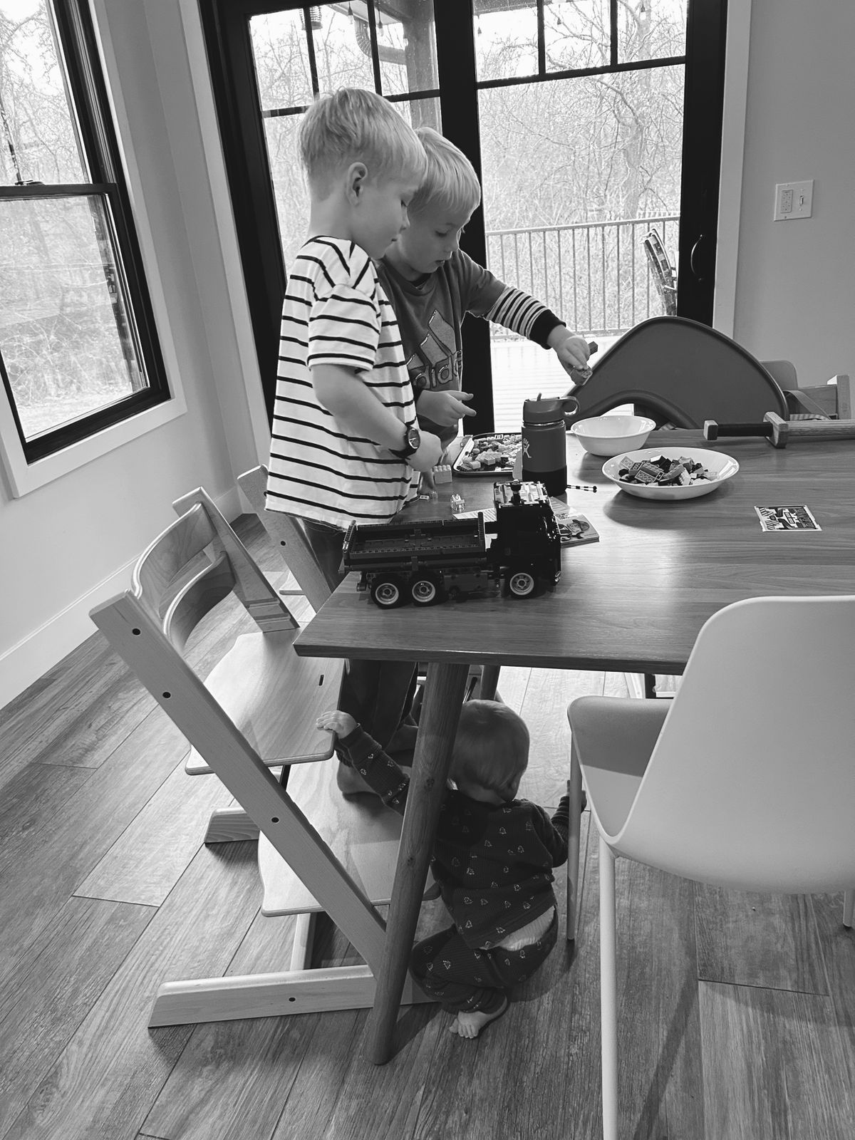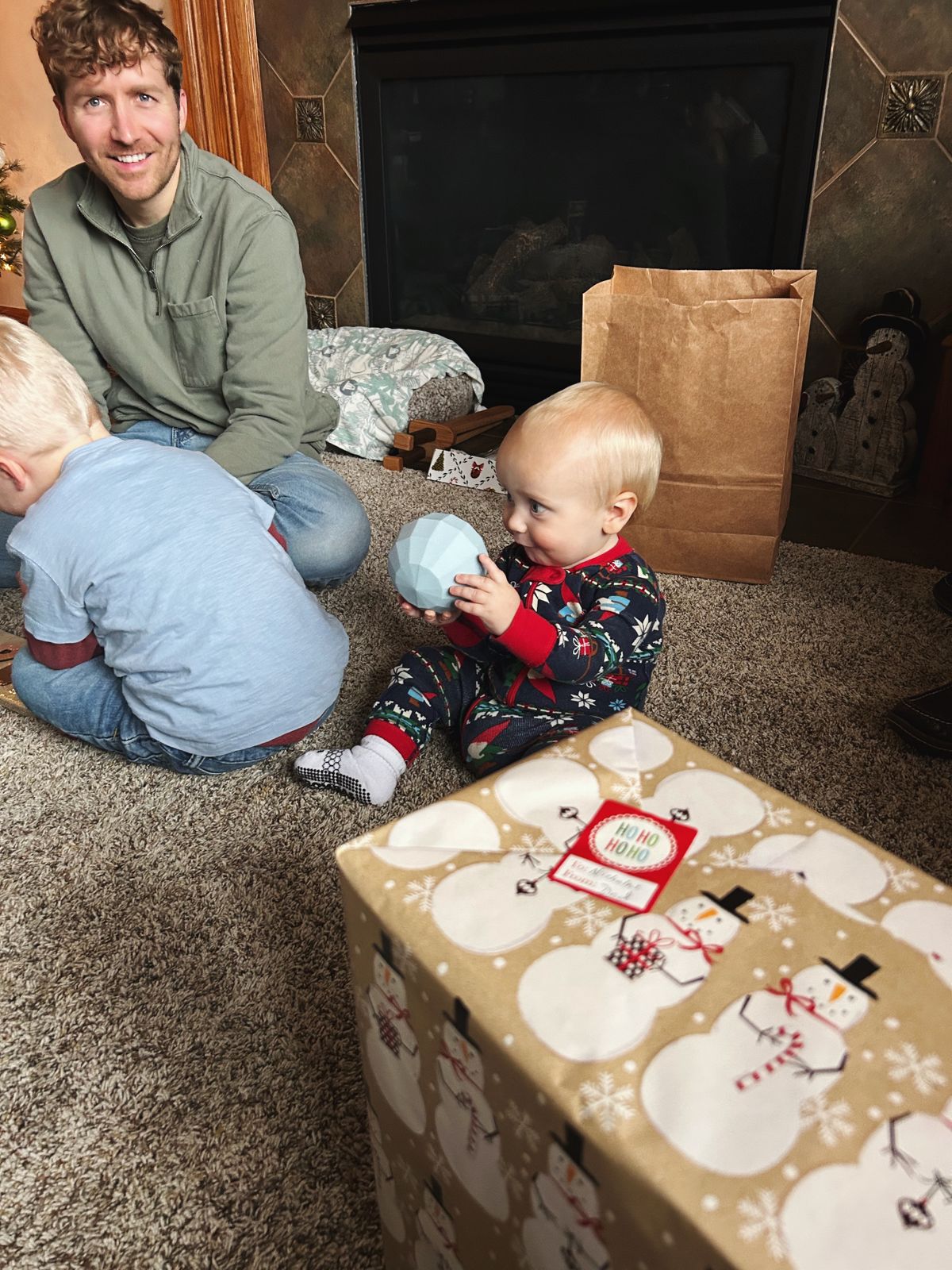On Christmas Day morning, I woke up a bit before everyone else to roll out and bake sourdough cinnamon rolls. The dough was unfortunately very underproved (quite honestly, the only disappointment about Christmas!), and so they were less than stellar this year. Once everyone was up, we had Christmas breakfast together, lighting our four advent candles again and reading the Christmas story in Luke. The boys didn't seem to mind the subpar rolls and Nicholas and I paired them with eggs and sausage. After breakfast and tidying up a bit, we exchanged gifts with the boys.