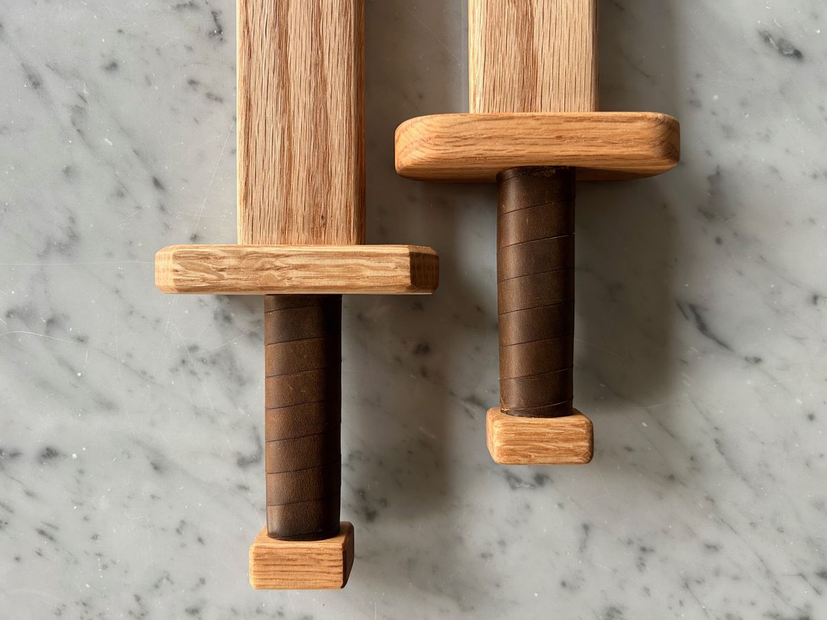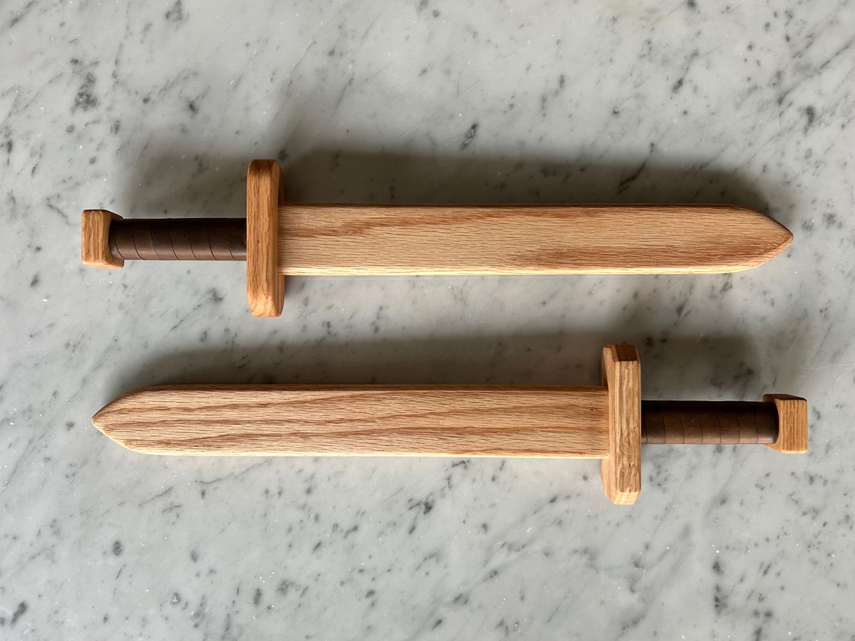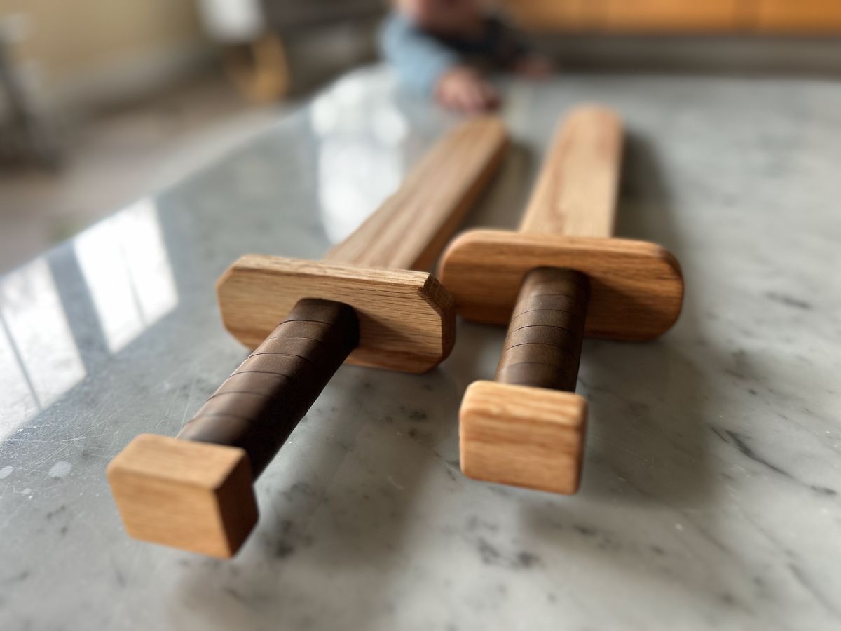 And perhaps the gifts Nicholas and I were most excited to give were handmade by each of us. Nicholas spent many hours in the garage, late at night and on weekends, making wooden swords for the boys. They are routed and shaped and sanded beautifully, made out of oak, designed by him, with leather-wrapped handles. And of course the boys adored them.