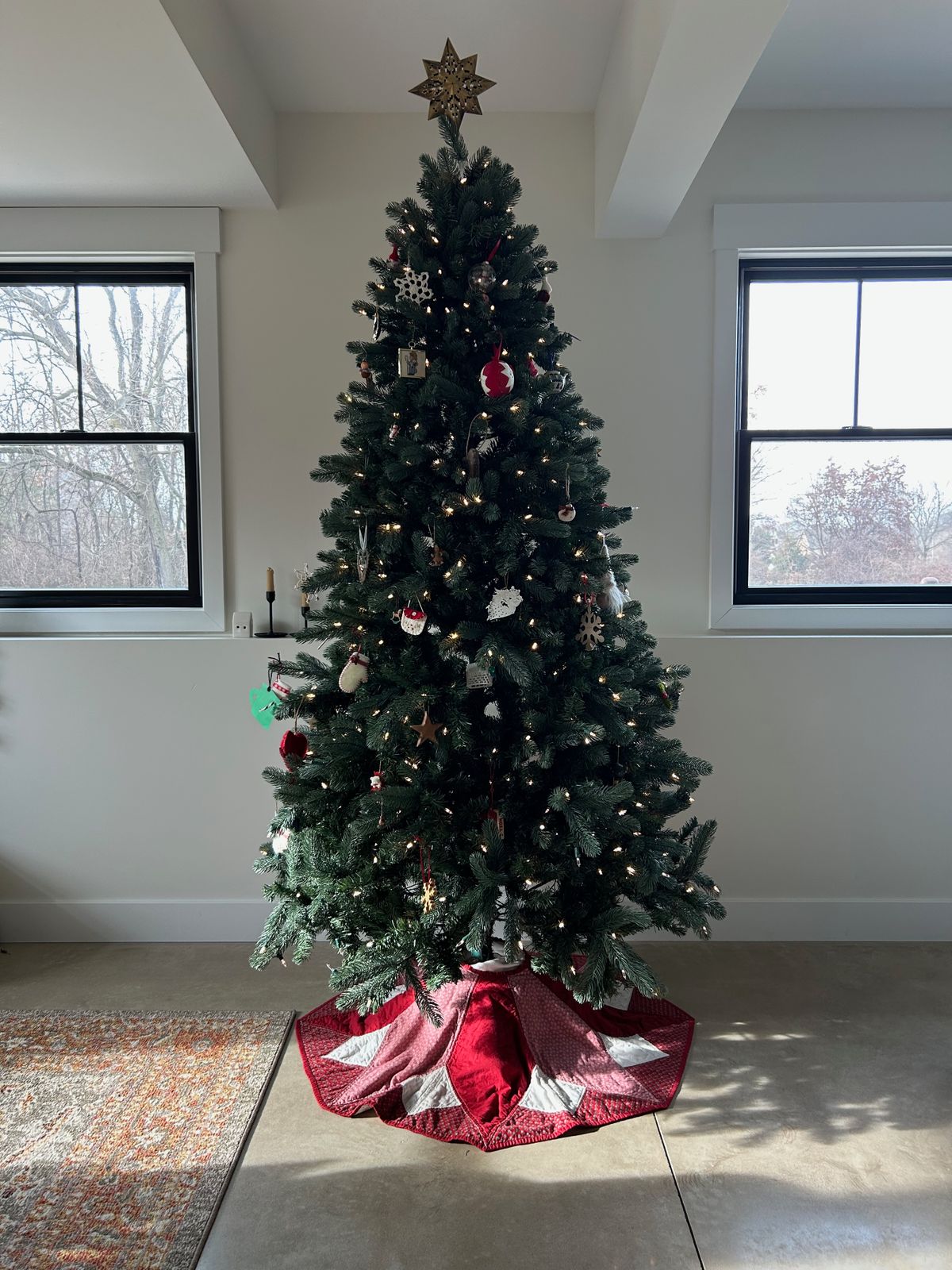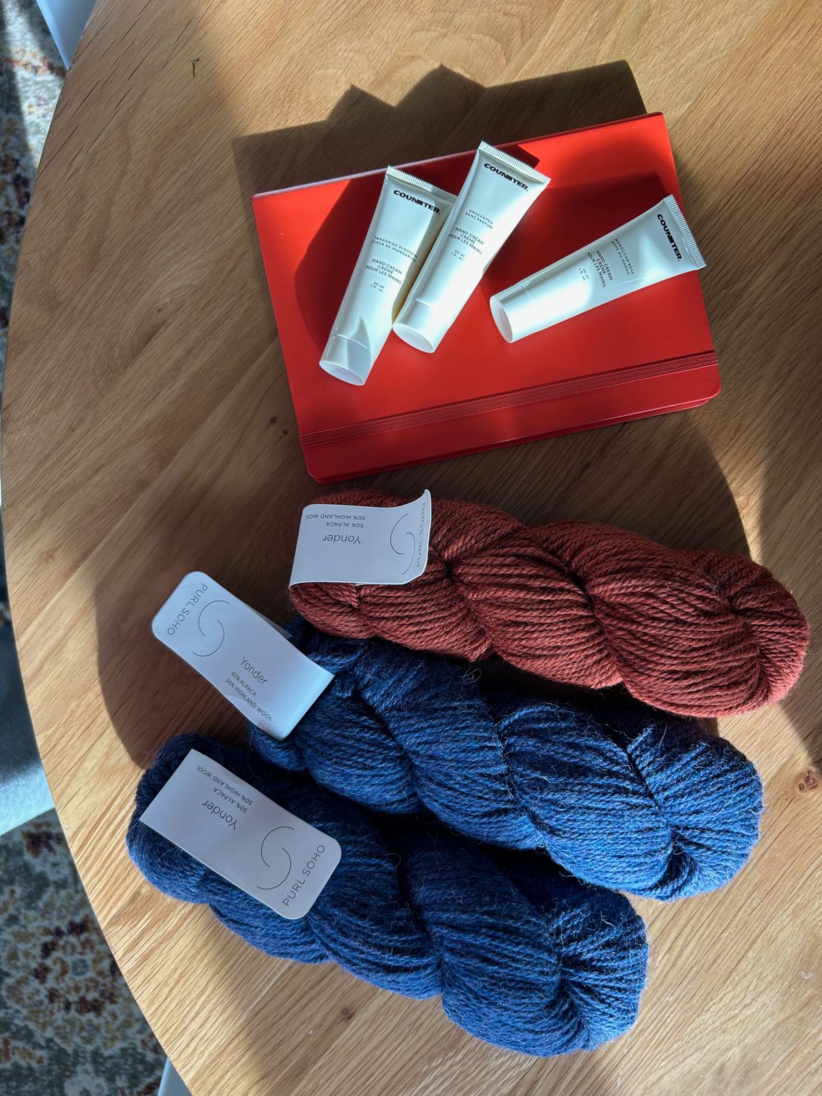 Nicholas and I exchanged gifts with each other, and I opened a gift that the boys had picked out for me: two colors of Purl Soho Yonder, one skein in Red Oak (picked out by Cooper) to knit Cooper a new hat and two skeins in Blue Jeans (picked out by Finn) to knit myself a hat. For both projects, I'll use Purl Soho's Mixed rib hat pattern, a favorite of mine from gift knitting in 2024. These hats have been worn so many times and there is no wear on the yarn. I love having yarn in colors that the boys chose.