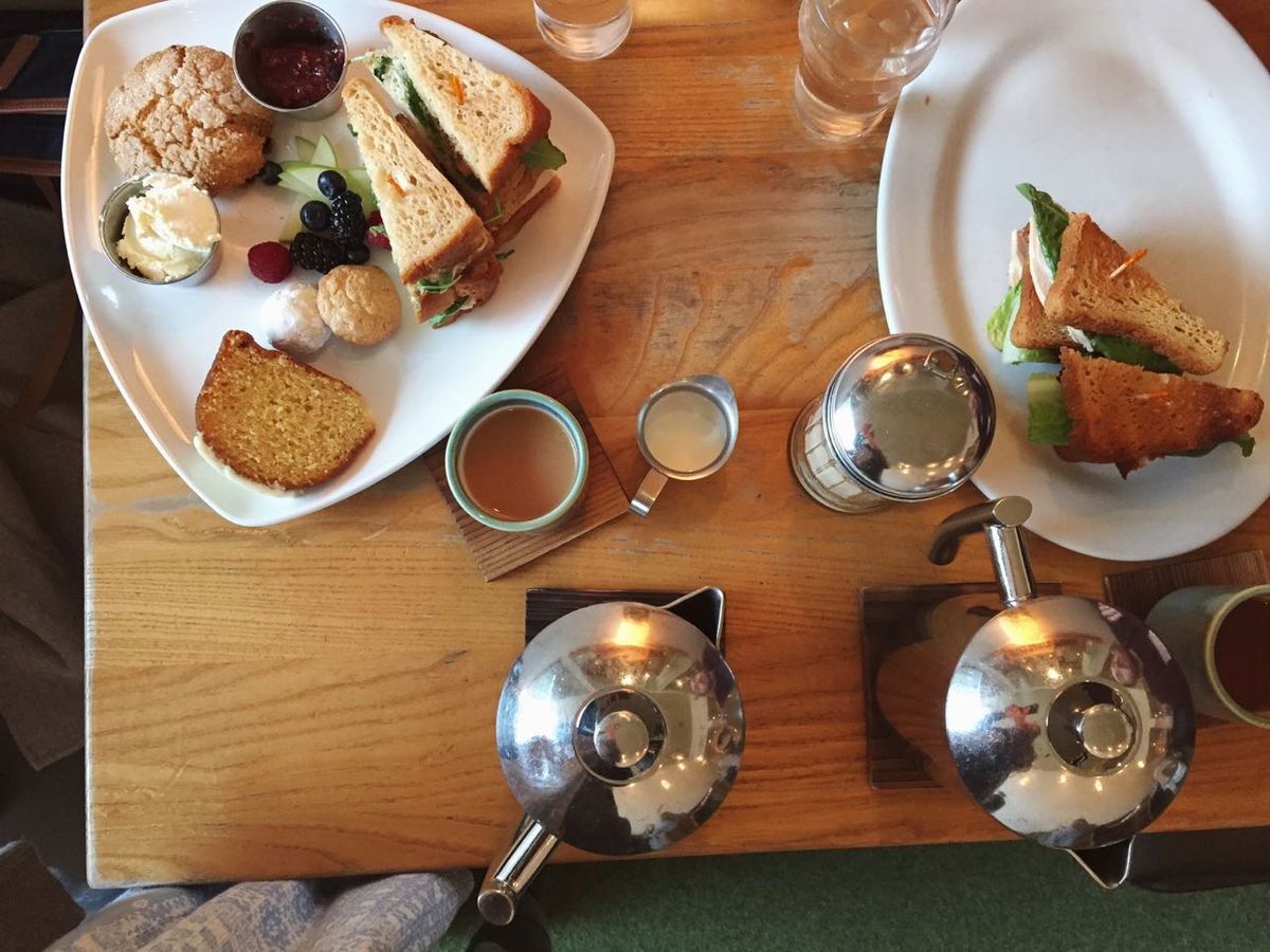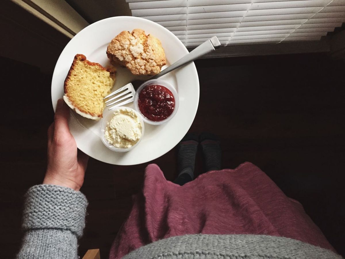 And today, we bundled up* and went on a date to a local tea shop where I ordered full tea service, including tea sandwiches, a scone, tea cake, and cookies. I drank English Breakfast and he drank an herbal Christmas tea blend, and we shared all the desserts, and we took some home too. He wore his new grey hat that I knit for him and I wore my red brioche scarf and my snöflinga hat, a favorite combo, as it were. And now we're home, resting, and I'm gonna do laundry, some sweater knitting, and wind yarn for a new hat!