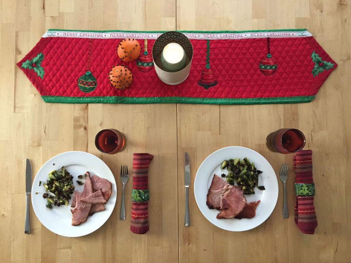 I baked a ham and roasted brussels sprouts for our midday meal, and we set the table for two. In the afternoon, I managed to finish the Christmas socks, just in time for me to wear them! And we watched The Family Stone and I cried at the end, like I always do. In the evening, we ate cereal for supper, I think, because that sounded good after such a large lunch. We FaceTimed or called both of our families and heard about their days. It's not a substitute for spending the day with family, but it was nice to catch up a bit and hear familiar loved ones' voices.