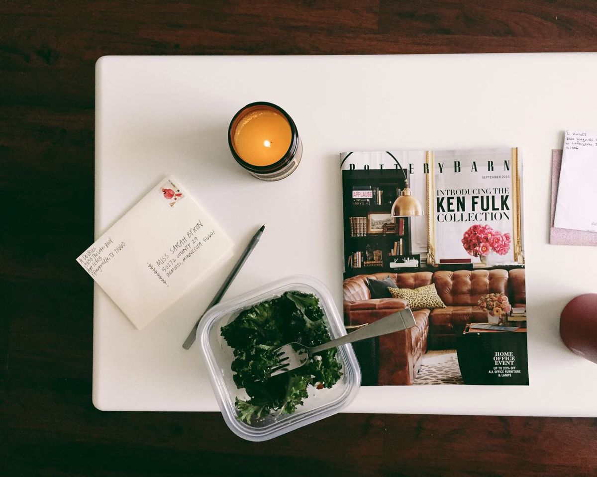 - the most recent Pottery Barn catalog, for browsing and inspiration (we're not shopping for anything for our home right now)