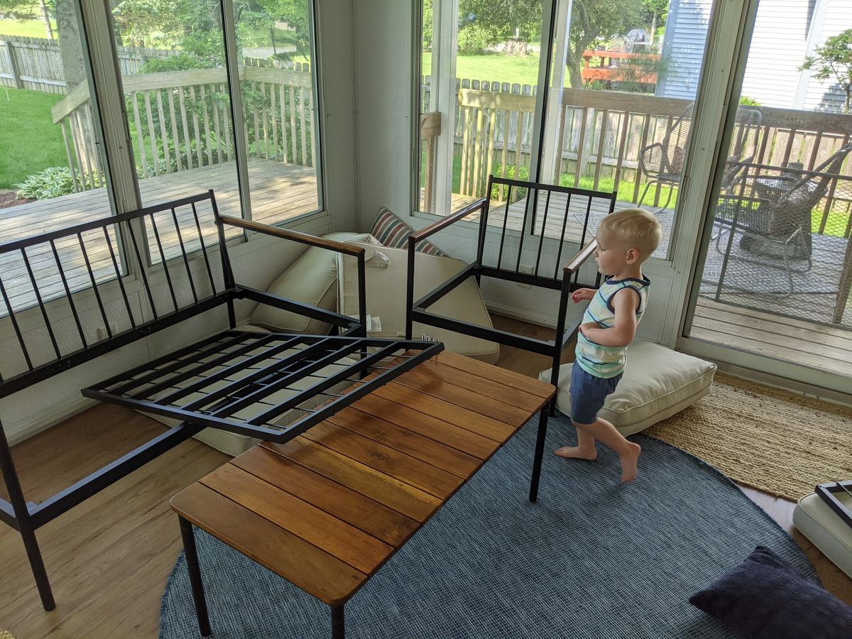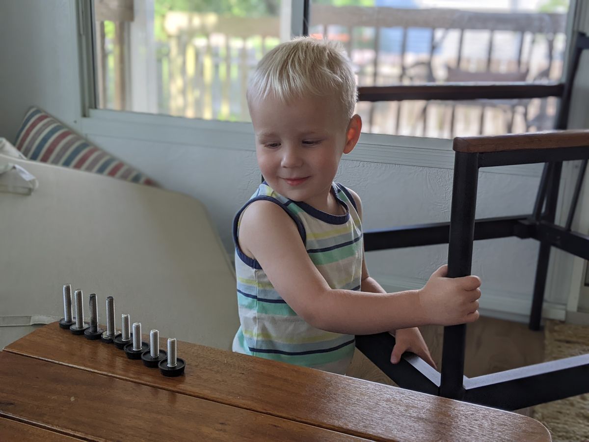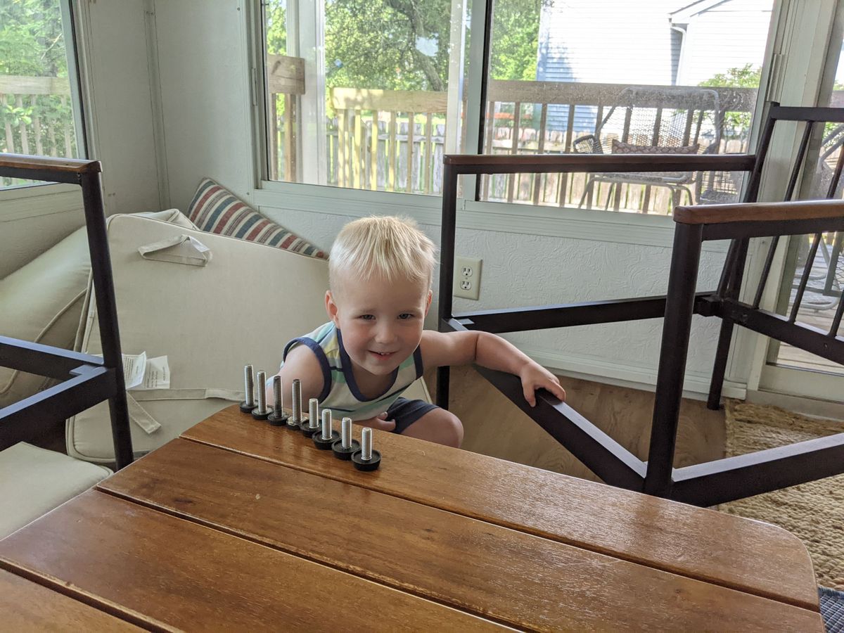 - Perhaps as a result of the previous point, he loves taking everything apart. And I do mean everything: patio furniture, pens, remotes, you name it. One of the most-asked questions around here is, "How does this come apart?"