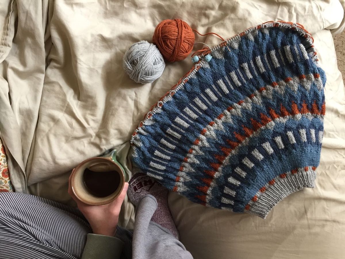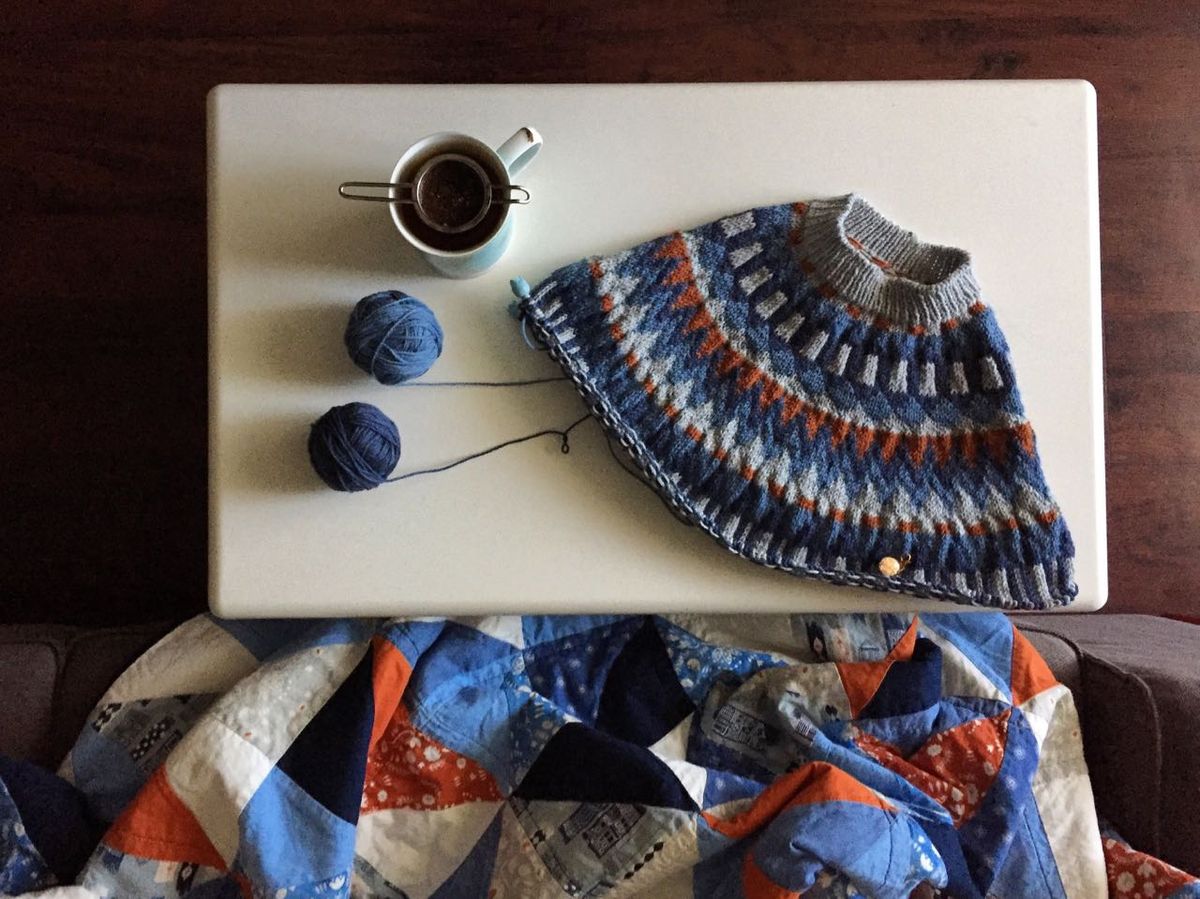 - Ninilchik Swoncho: I love this work-in-progress so much. For the most part, knitting doesn't scare me, you know? I'm game to try new techniques and jump right in, because at the end of the day, it's yarn that can be unraveled. But when I cast on for this project, there was a moment where I paused and thought Wait, can I do this? And then I cast on and just went for it. I'm loving every aspect of this project: the yarn, the scale, the colors, and I can't wait to wear the finished sweater/poncho hybrid.