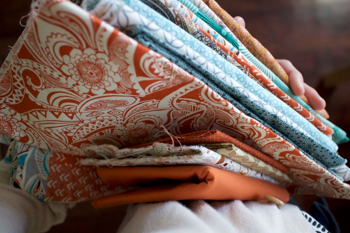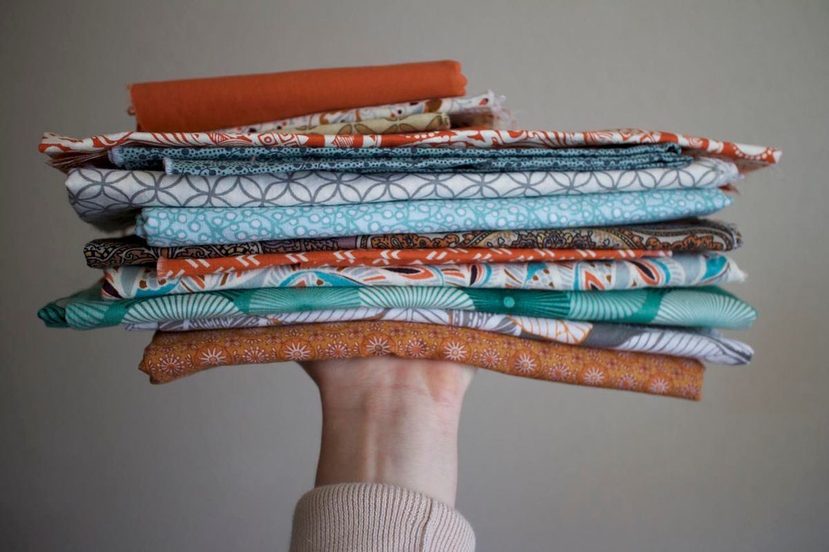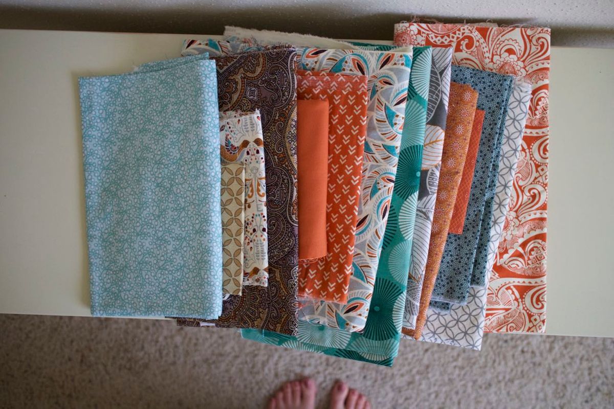A lap/twin-size quilt of undetermined pattern with these fabrics (as part of my own #stash_less challenge)