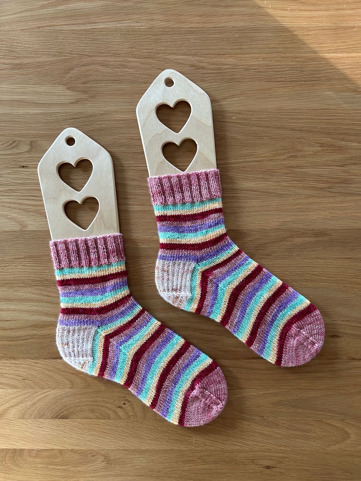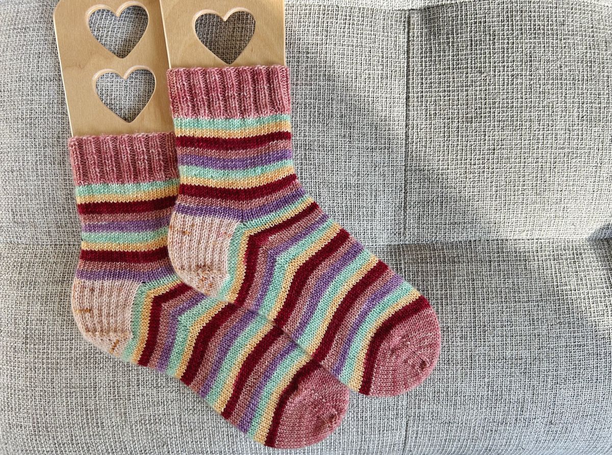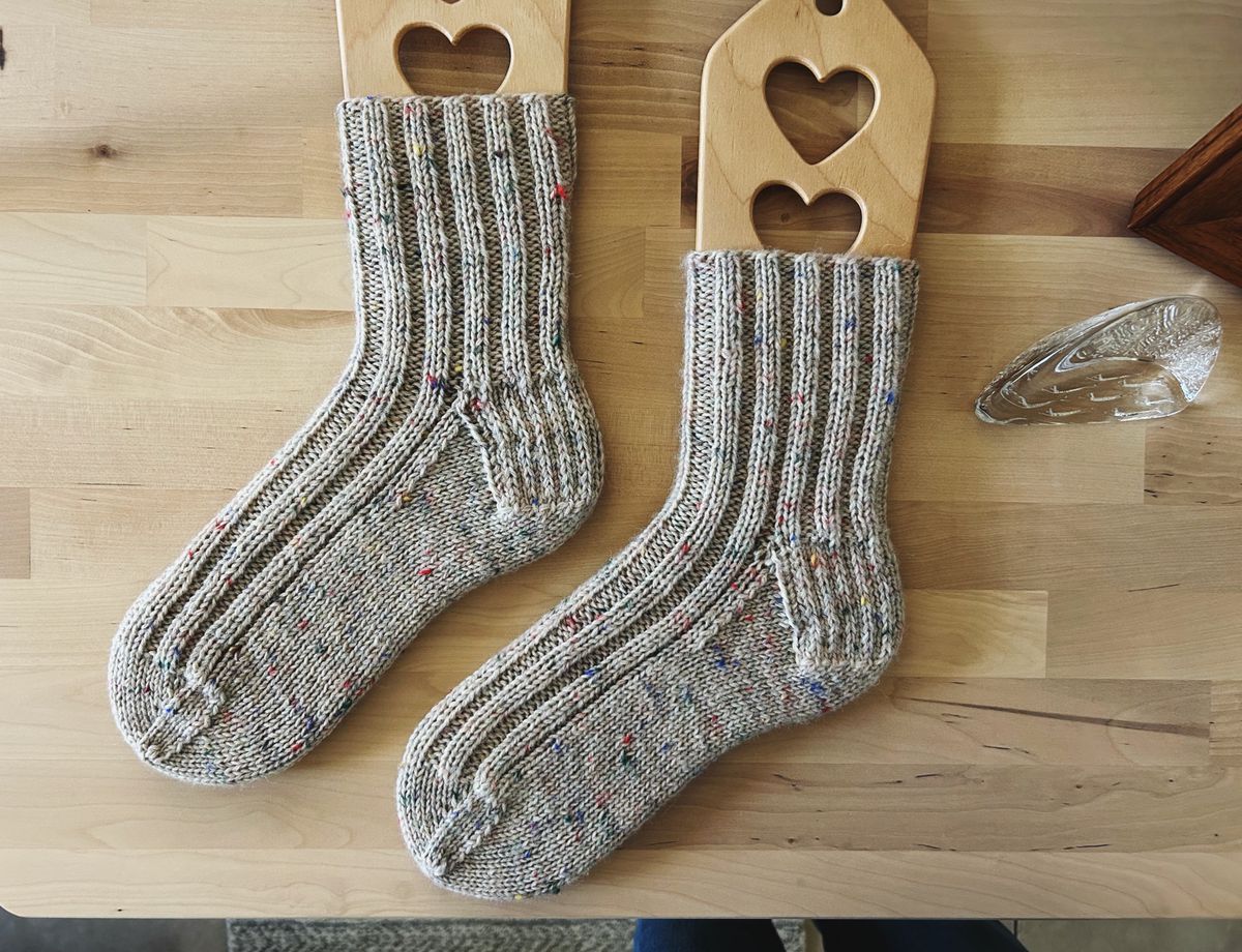 - the Heel Toe Do Si Do socks in a softly speckled yarn. After knitting some thicker socks, I like the idea of another pair of fingering weight socks