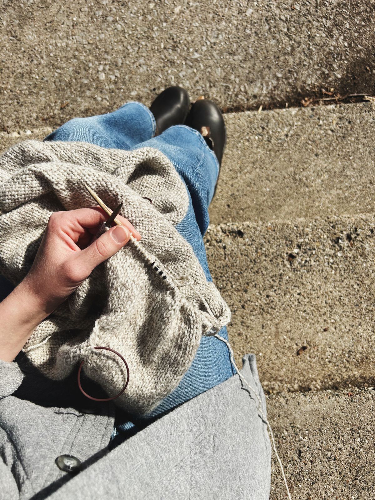 In the meanwhile, I am doing more and more knitting outside, while the boys collect rocks or play in the mud, and we all try to get some sunshine.