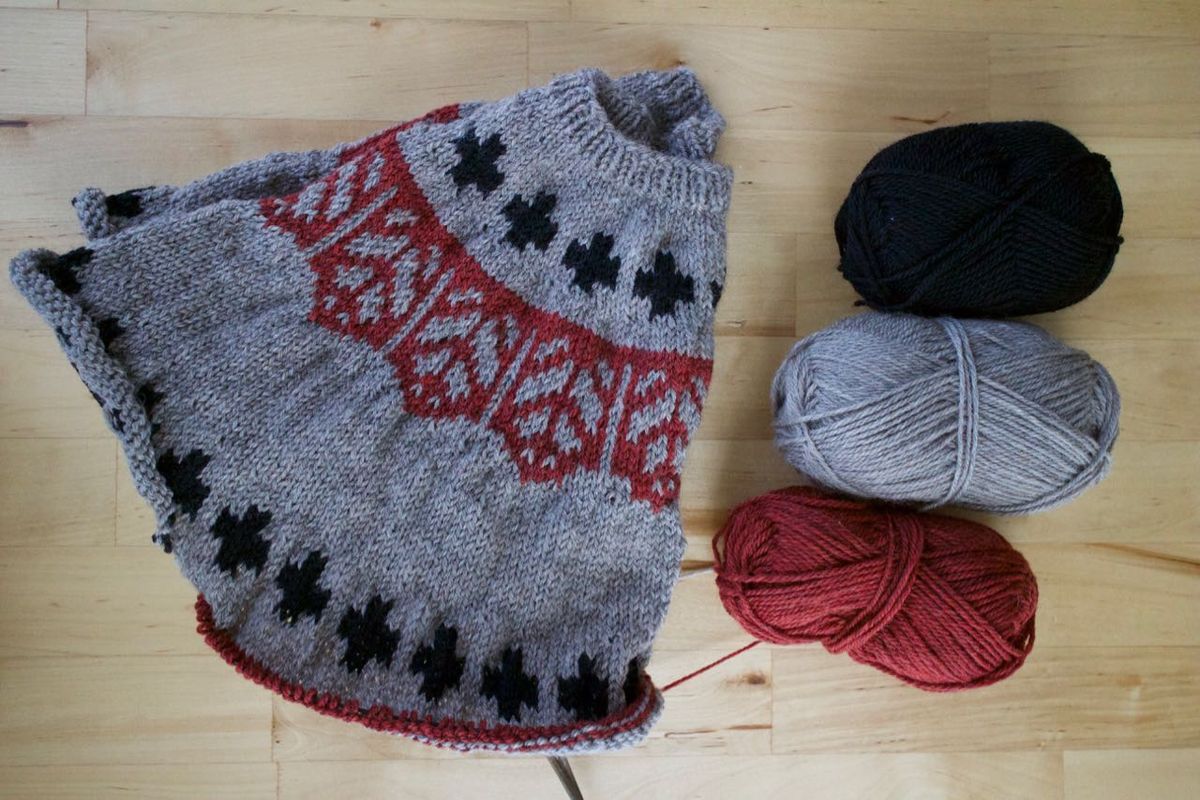 - Tecumseh sweater—I'm making some slow progress on this. Yesterday, I split for the sleeves, so now it will start to look and feel more like a sweater. I prefer to work colorwork in starts and stops, with longer knitting sessions that are less distracted. It's not TV knitting for me, per say, so I choose my moments accordingly. I would like to finish this before the baby arrives, which seems very doable, even if I won't be able to wear it at that point in time.