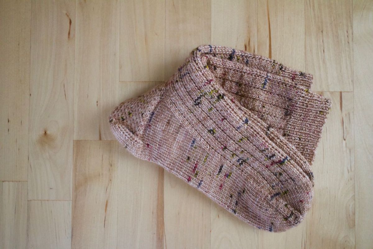 Size: 64 stitches, knit to my foot length