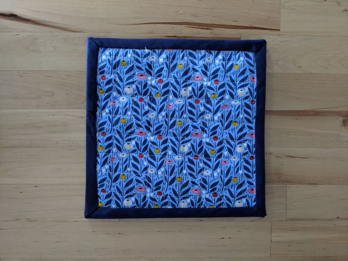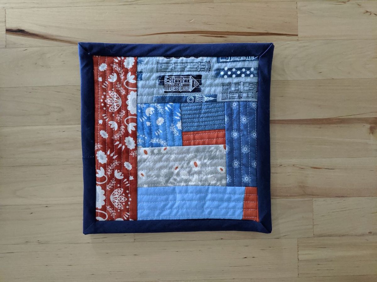 A "mug rug." There isn't really enough batting in this to use it as a potholder, but I love the idea of using it with our coffee for fika. Most of these fabrics are scraps leftover from my first solo quilt that I sewed almost three years ago.