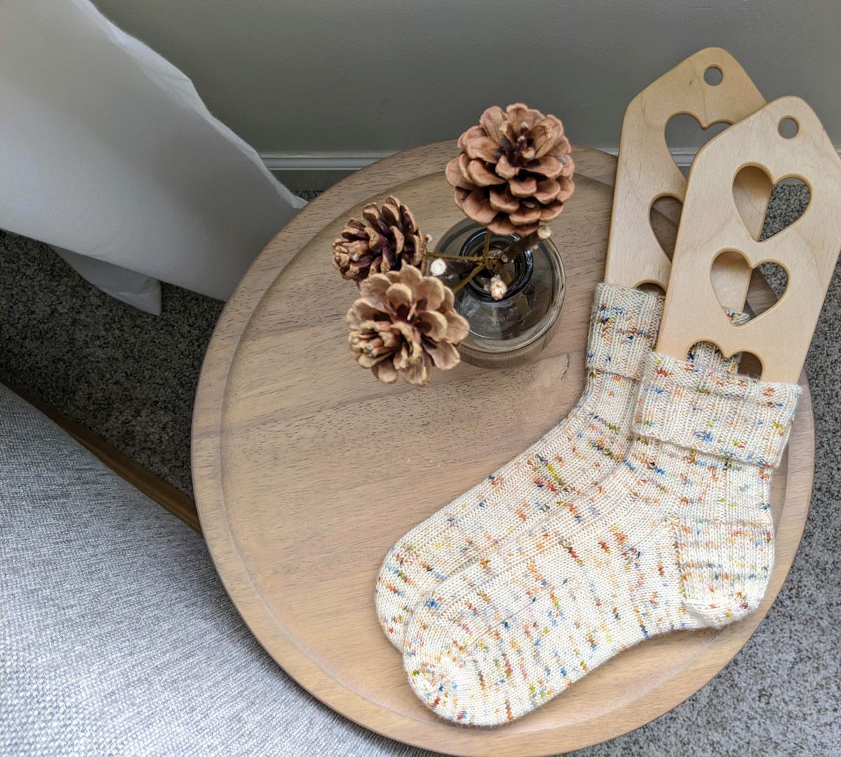 A pair of speckled socks! These were a pleasure to knit. The speckles made each row a fun, little surprise, and of course, the cashmere content in the yarn made the knitting itself so nice. I knit them with a yarn I had been saving for a rainy day, so to speak, and it feels good to use the yarn for a cozy pair of socks. I knit one of my very favorite patterns, the Cyril socks, but omitted the twists, resulting in a well-fitting wide ribbed sock. I've done this pattern with this modification several times now, both for myself and for Nicholas and have been pleased with the results each time.