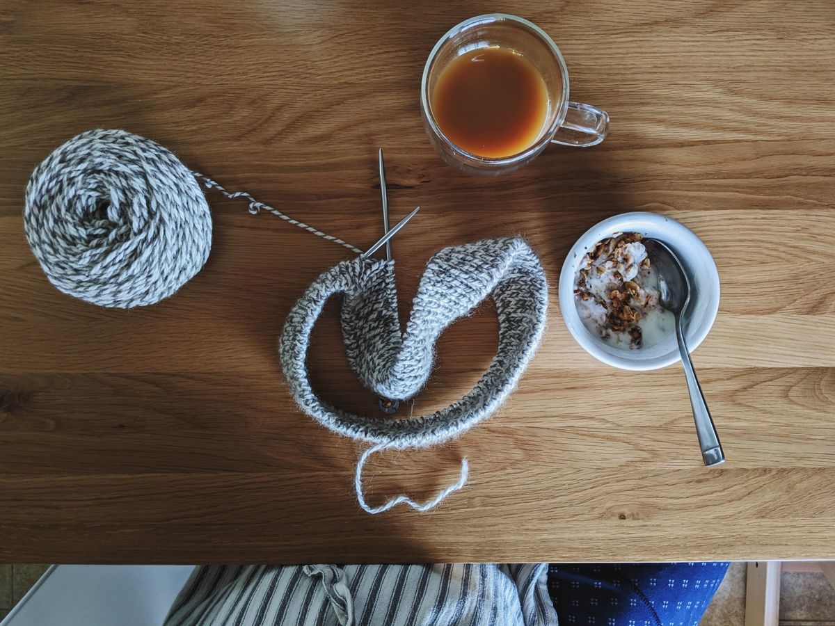 - a simple and oh so soft marled cowl that I intend to fold double on itself once it's completed. I see this as a longer-term project, since it's hours and hours of knitting, but also it's nice to have an established, mindless, comfort knit, especially on the brink of mothering two babes.