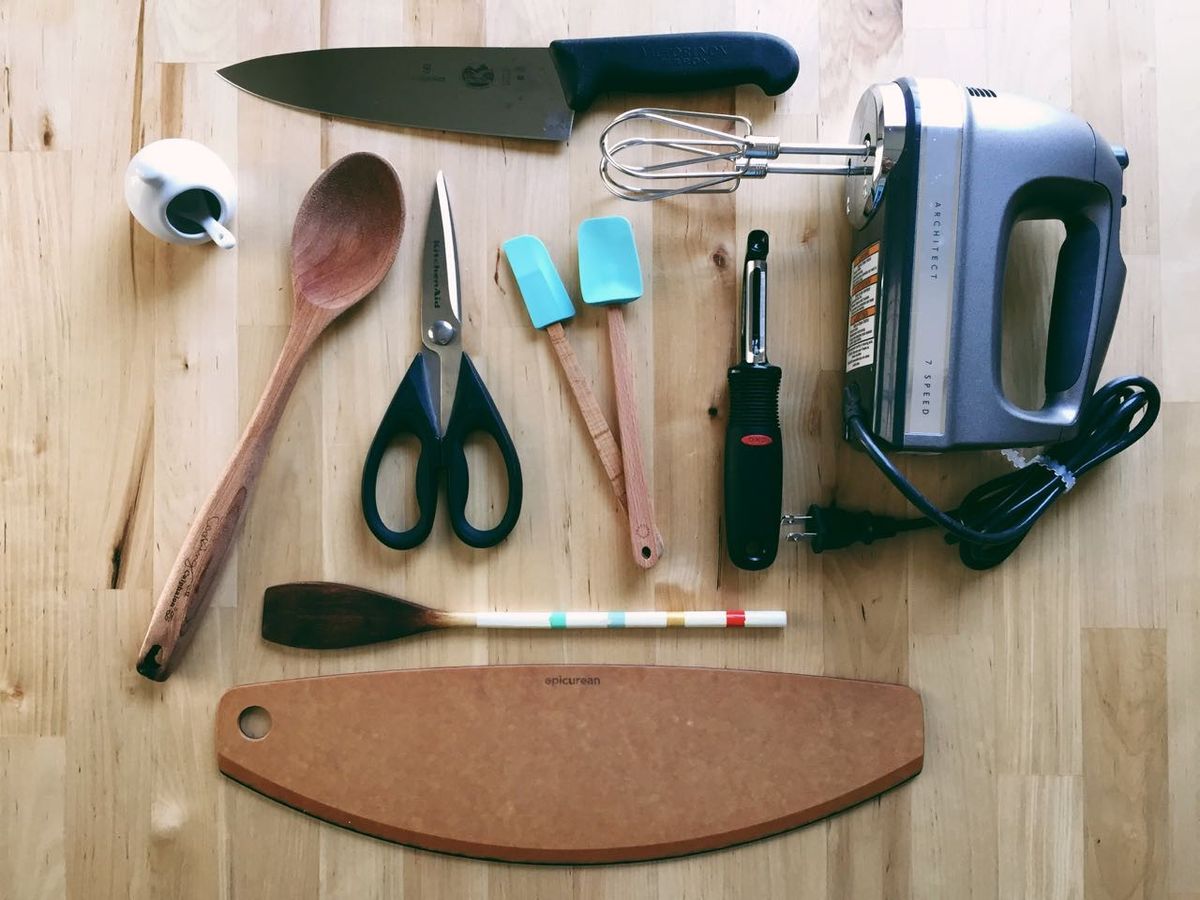 - Chef's knife: Before I had a good knife (and before I learned good knife technique), I loathed the idea of cutting up vegetables. Now, it's one of my favorite parts of meal preparation. You don't need a full knife set—all I ever use is a Chef's knife, serrated knife for bread, and a paring knife for fruit.