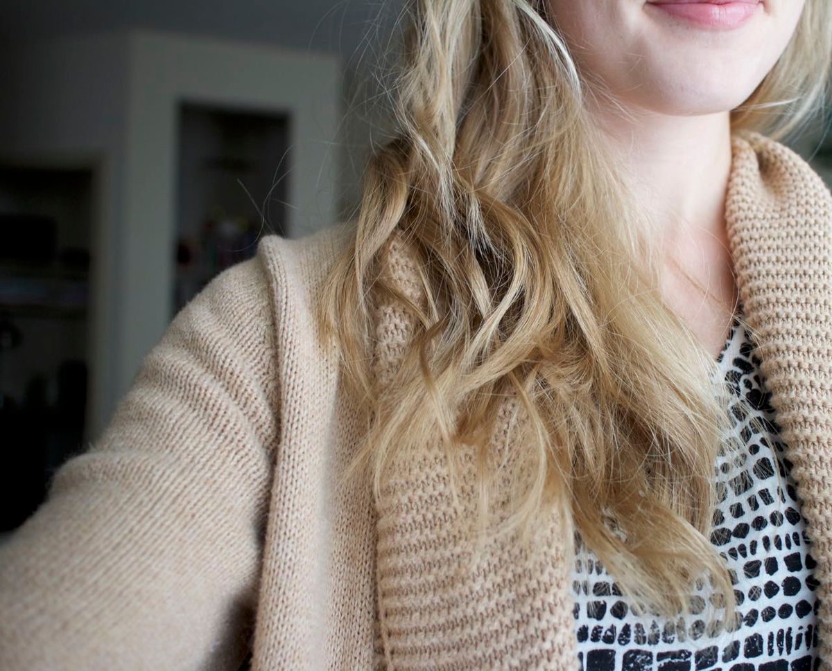 I'm laughing to myself as I type this, since it's hardly a routine. That said, I do the same things again and again with my hair. My hair is naturally blond, with a slight wave/texture. Usually, I wash my hair every other day. I shower at night, towel dry my hair, and then go to bed with wet hair, as my hair is less frizzy when I do this. If I want curls, then on day one of clean hair, I'll wear my hair in a high bun, and then sleep with the bun in. The next day, I take it out and my hair will hold the resulting curls all day long, and even into a third day, if I feel so inclined. To spruce up between washings, I use dry shampoo. And that's it. Hair spray is reserved for special occasions. I can't be bothered to use a hair dryer or straightener, and I keep my hair long to avoid style-intensive cuts. (I say all this like I know what I'm talking about, but really, I'm just lazy). Instead, I'll wear my hair down (un-styled), braided to the side, or in a high ponytail.
