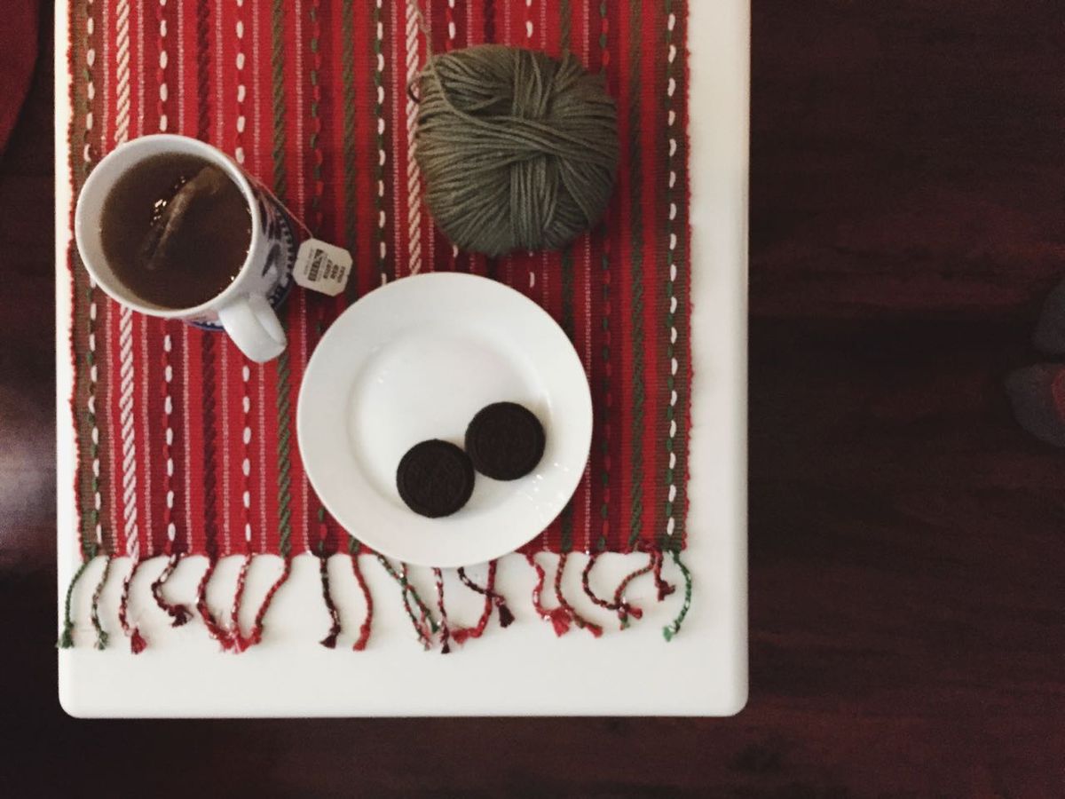 Amid our Christmas decorating, there was cleaning and listening to Christmas music and snacking on Trader Joe's gluten-free candy cane joe-joe's (they're really good), and drinking tea and working on a logic puzzle and Christmas gift knitting. I'm excited for the next few weeks of coziness and anticipation.