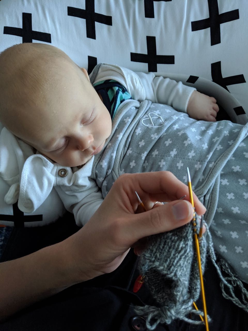 - Cooper taking two hour naps on my chest. It doesn't happen all the time, but if I can anticipate a long nap coming, where I'll be immobile, I make sure to refill my water bottle, and have the remote and my phone close, some easy knitting (socks for N in this case), and sometimes a snack.