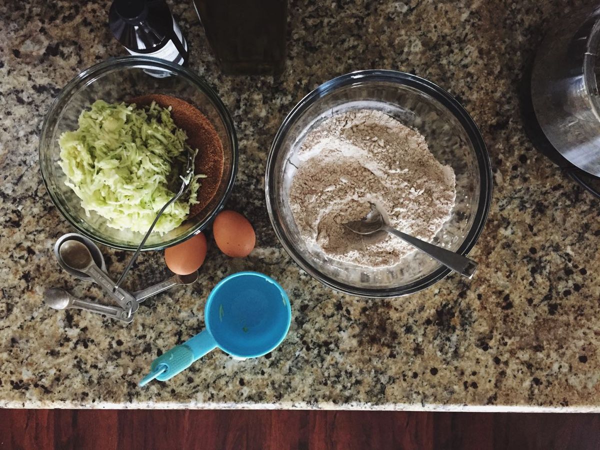 My zucchini bread (gluten-free). I made this today, and instead of the rice flour(s), I subbed in whole grain Cup4cup gluten free wholesome flour blend, since that's what I had on hand. I didn't make any other changes and it was still just as yummy.