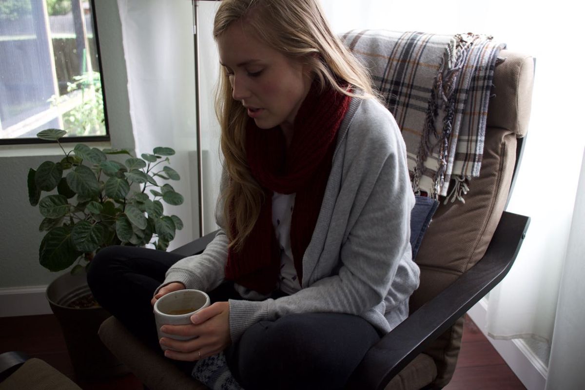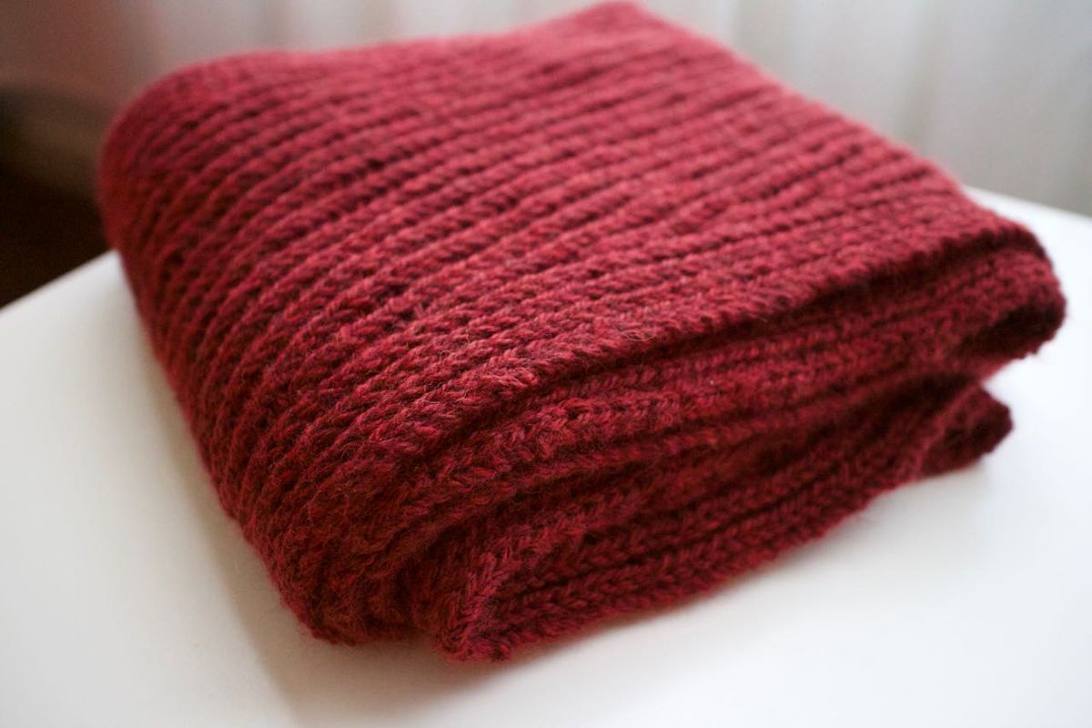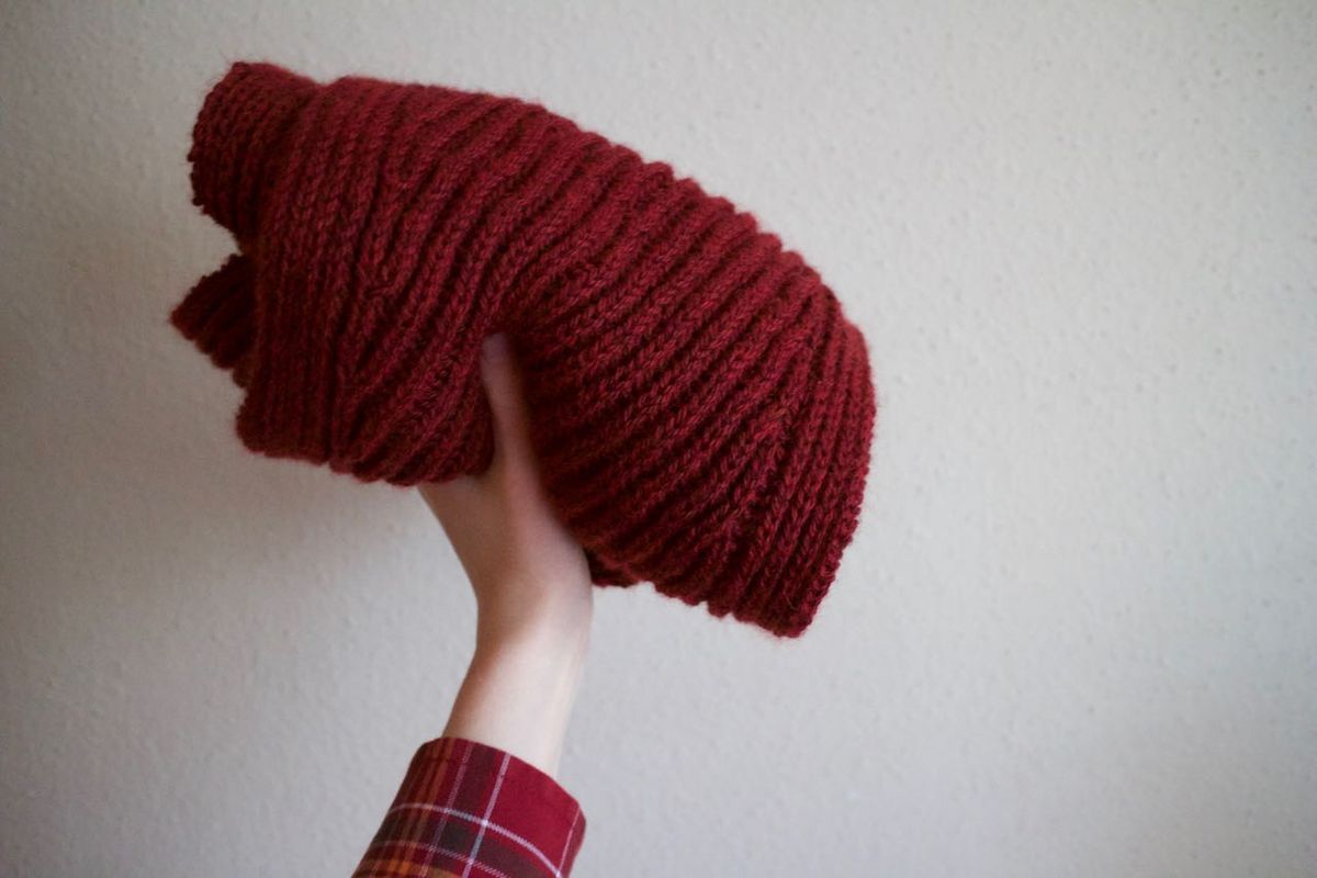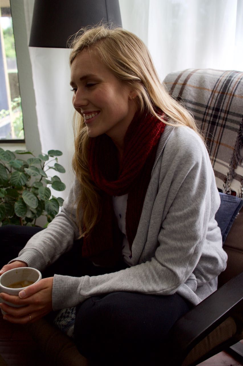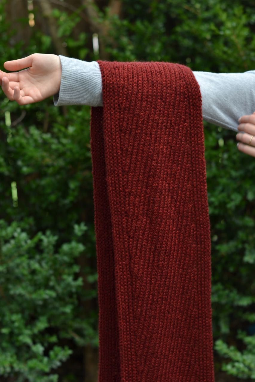 I actually love the finished object far more than I liked it in process. This poor yarn has been through the wringer — see red yarn, five tries — and was rather "crinkly" from being in knitted form, sitting untouched in storage. As I knit with it, the stitches looked a bit uneven and sloppy. I wasn't too worried because I knew I'd still wear this scarf, albeit wrapped up and tucked in and not examined too closely. However, blocking worked a small miracle and now I have a finished scarf in a pretty color, with even tension, lot of smooshiness (a technical term, of course), and a super soft hand. However I thought it would turn out, the process of knitting this was really enjoyable. Brioche-on-the-bias had just enough interest to keep me entertained, but plenty of mindless rows, too. After all those failed attempts, this yarn deserved a little photo shoot, and my friend Molly generously offered to take some pictures of me wearing it. :)