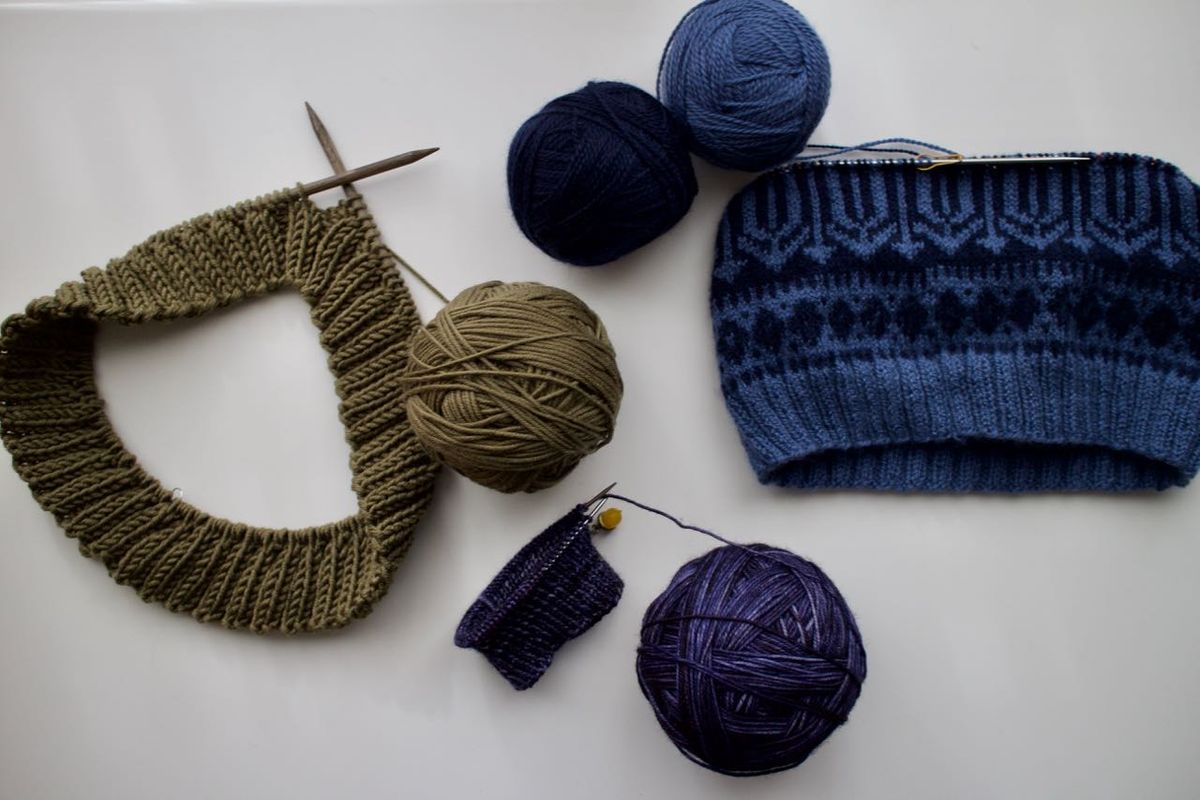 Olive green: Mae sweater (as a KAL with my friend Maeve! For updates, we're using #andreaandmaeveknitsweaters