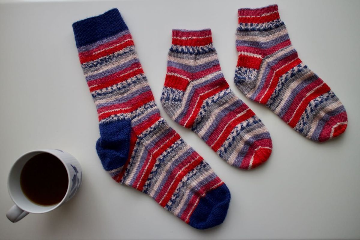 I've documented the only moderately interesting story behind these socks on instagram previously, so I won't bore you with a detailed version. In short, I ordered this yarn online to make socks for Nicholas, but one sock in, we decided it wasn't a good fit for "manly socks" and so the plans changed.