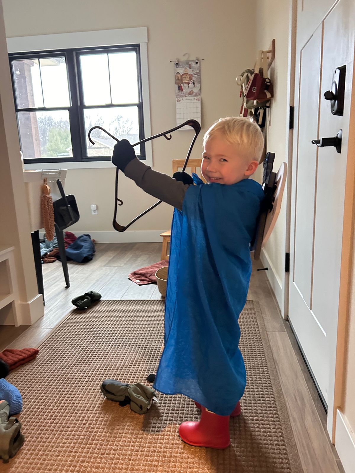 - Nearly any household item can become something to implement in battle (see the hanger, or should I say bow, in the photo below).