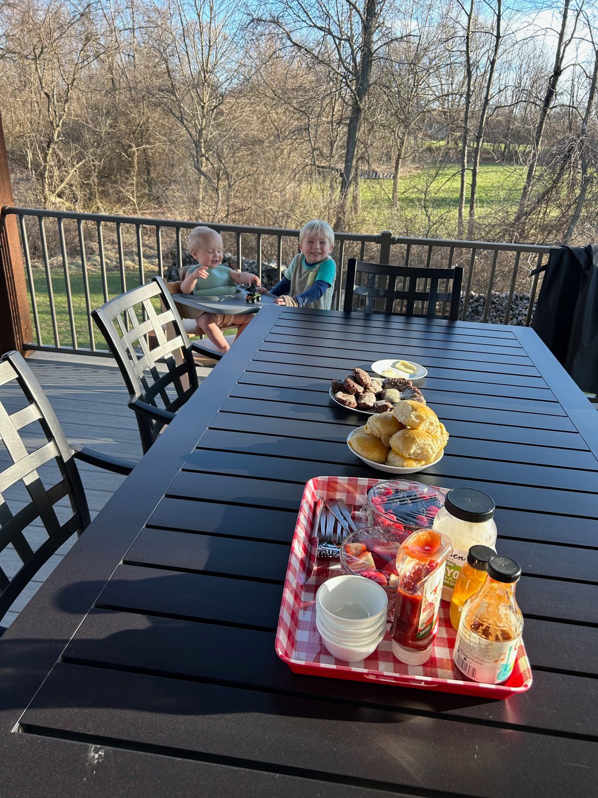 Finn's birthday dinner request was burgers, so we had those on sourdough buns, followed by a sourdough cinnamon orange cardamom cake. And the weather was absolutely beautiful, so we ate dinner on the deck for the first time this year. The sweetest day celebrating our sweet boy.