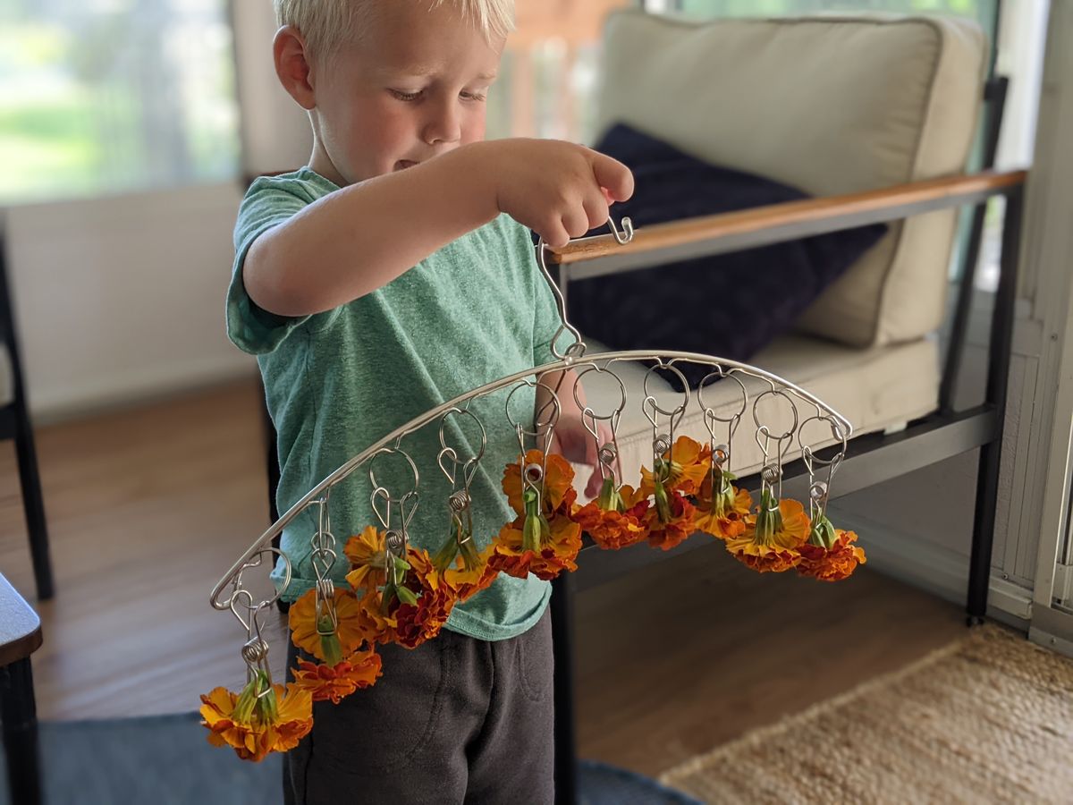 Marigolds, dahlias, rosemary, and chamomile all grew well. I am drying marigold blooms to use for a natural dye experiment at some point, but I also would like to use some in a salve or balm, but we will see. I also am drying some rosemary for future use.