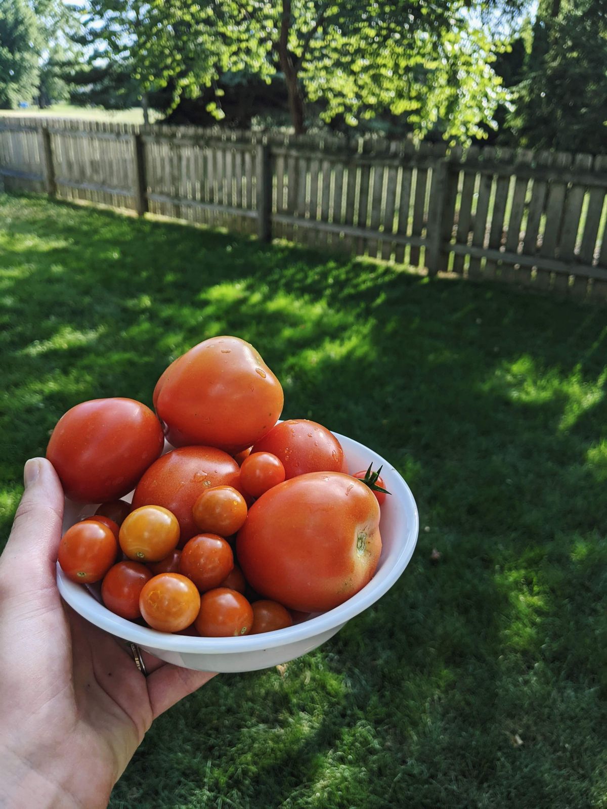 Tomatoes, tomatoes, tomatoes. I planted only three tomato plants (one cherry, two slicer tomato plants) and they have all been wild. It truly looks like a jungle and I've harvested hundreds of cherry tomatoes, in particular, as well as dozens of larger tomatoes.