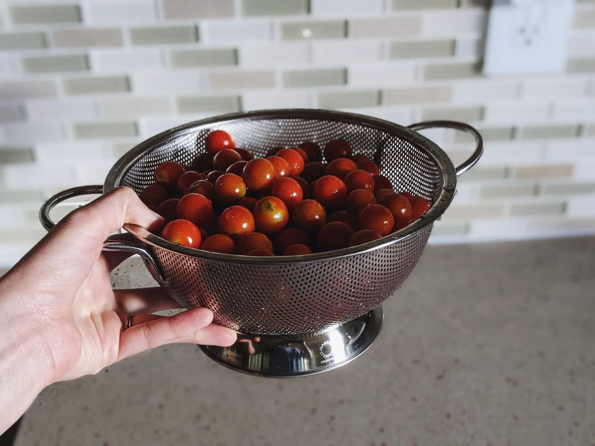 - freezing: And then, for the rest, I've cored the larger tomatoes and halved cherry tomatoes and frozen them. I know I could can them at a future date, if I decide to, but the goal was to get the overwhelming number of tomatoes off the kitchen counter