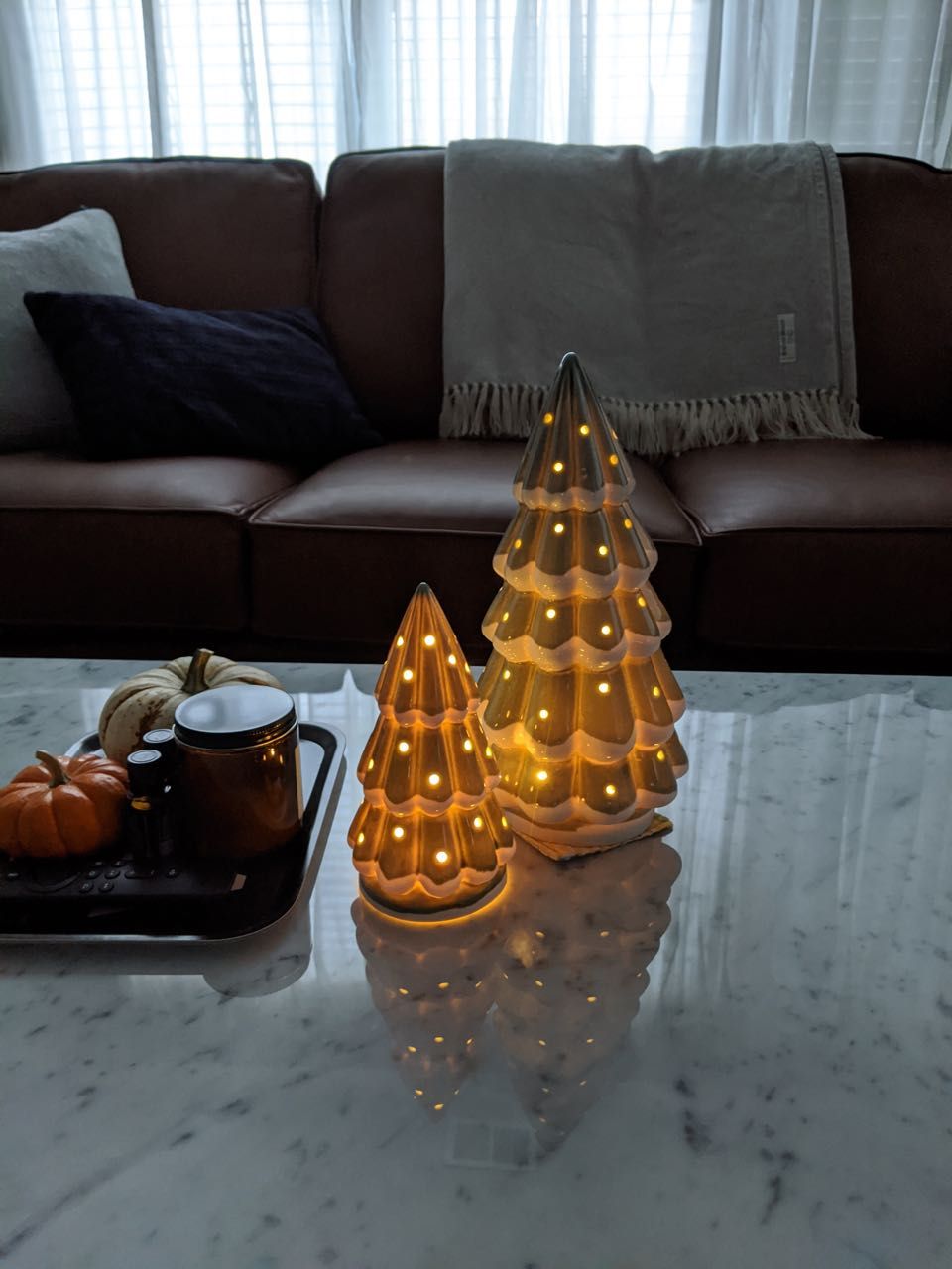 - the juxtaposition of fall and Christmas decor (& these ceramic trees that I just love)