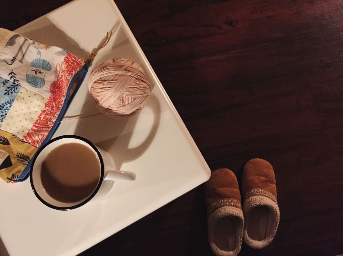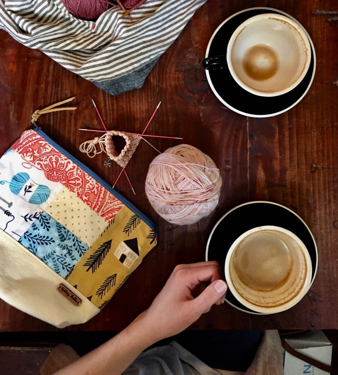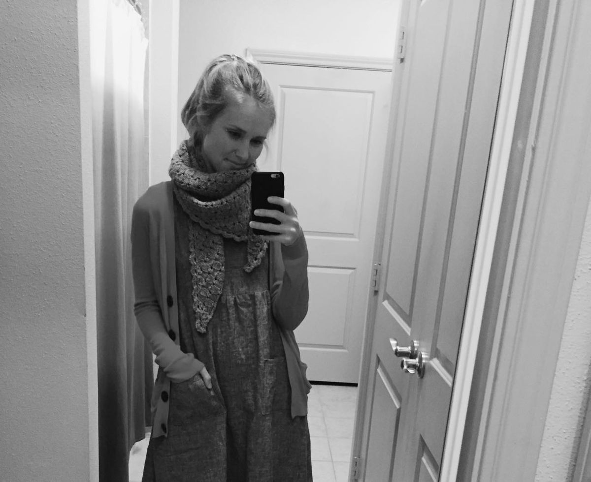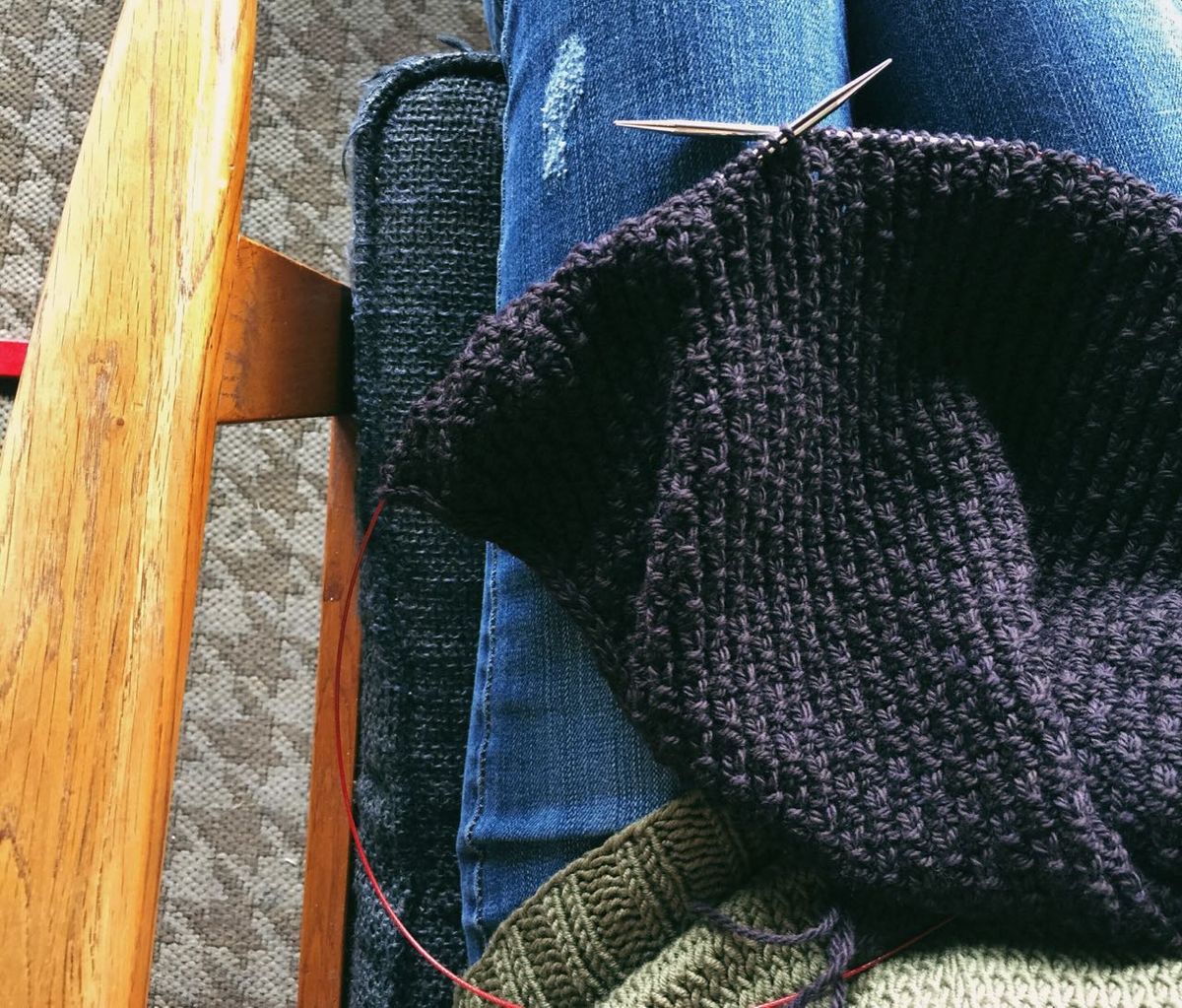 - wearing handknit sweaters, like my Mae sweater and my Weekender sweater and on warmer days, wearing my Klein dress top