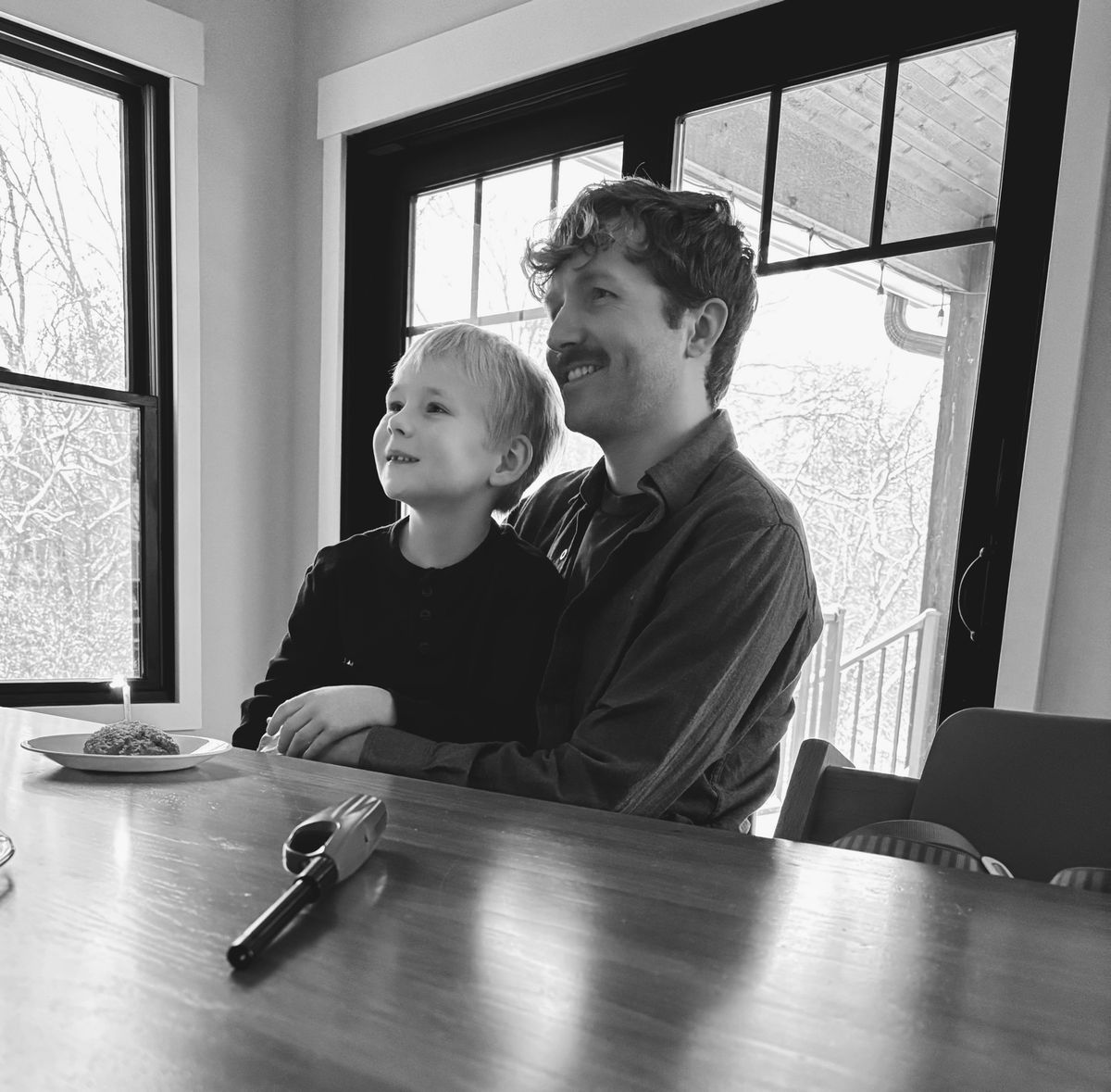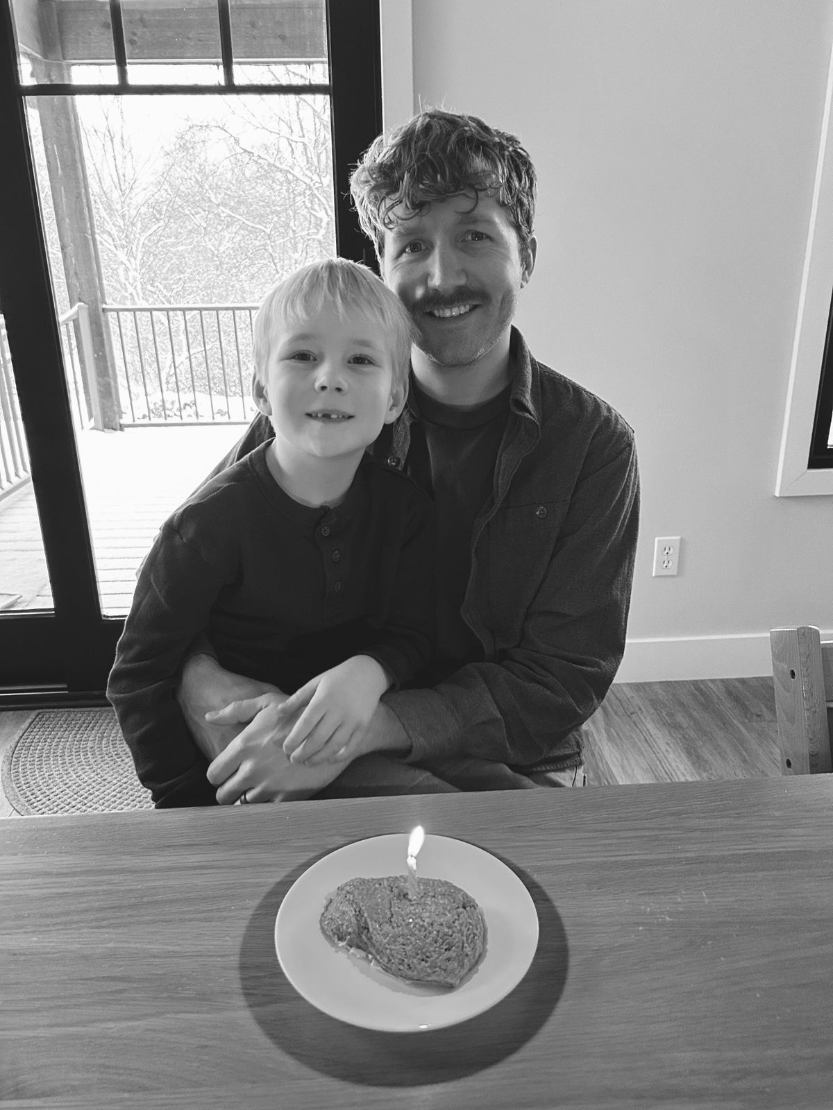 In late January, the day before his actual birthday, we celebrated him with local family. It snowed all day and the high was in the single digits, so we stayed cozy inside. I made sourdough cinnamon and cardamom scones ahead of time, and froze them unbaked, and then baked them from frozen (loved this time-saving hack) and they turned out great. I made coffee for myself and my father-in-law and the boys played some while the adults visited. And then Nicholas opened gifts, we sang to Nicholas after Cooper lit the candle for him, enjoyed scones, and visited some more.