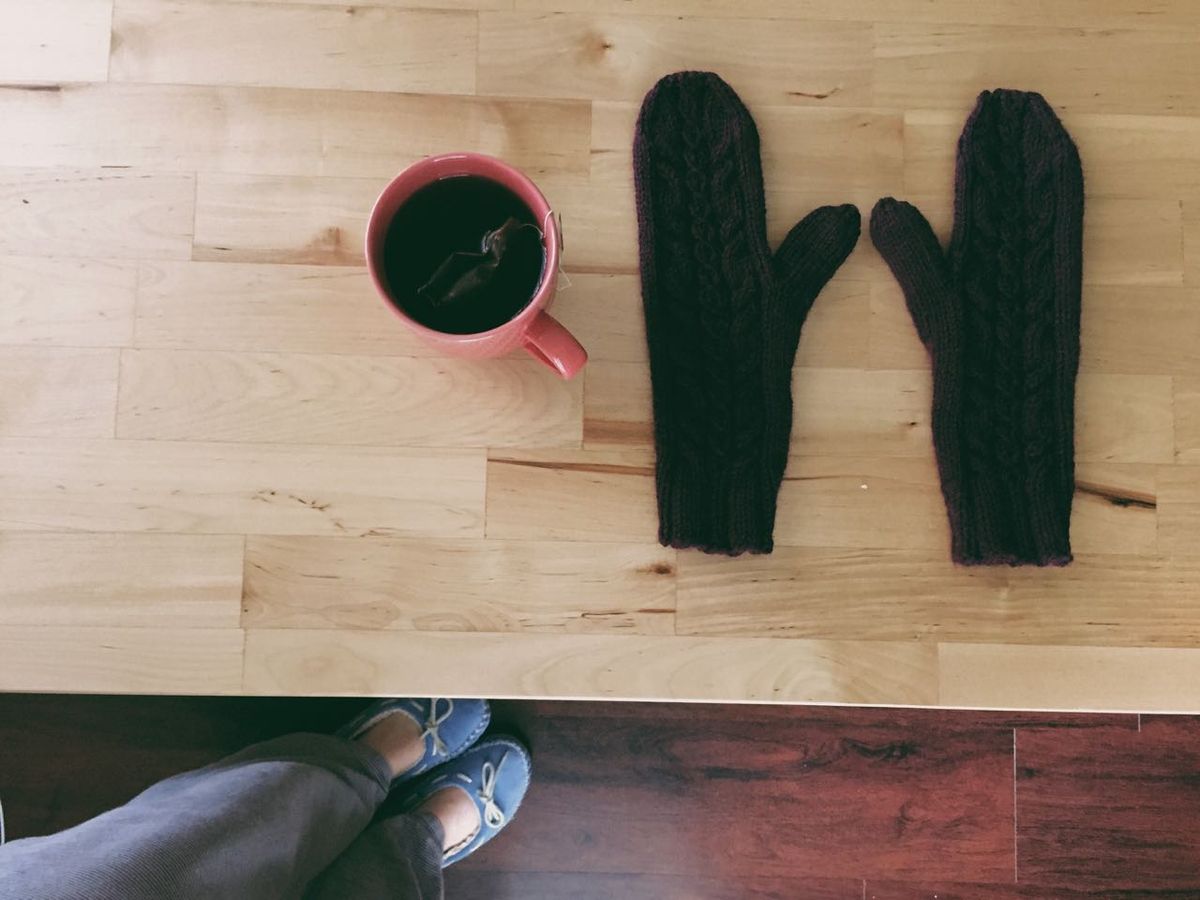 - staying up way too late to finish knitting a pair of mittens