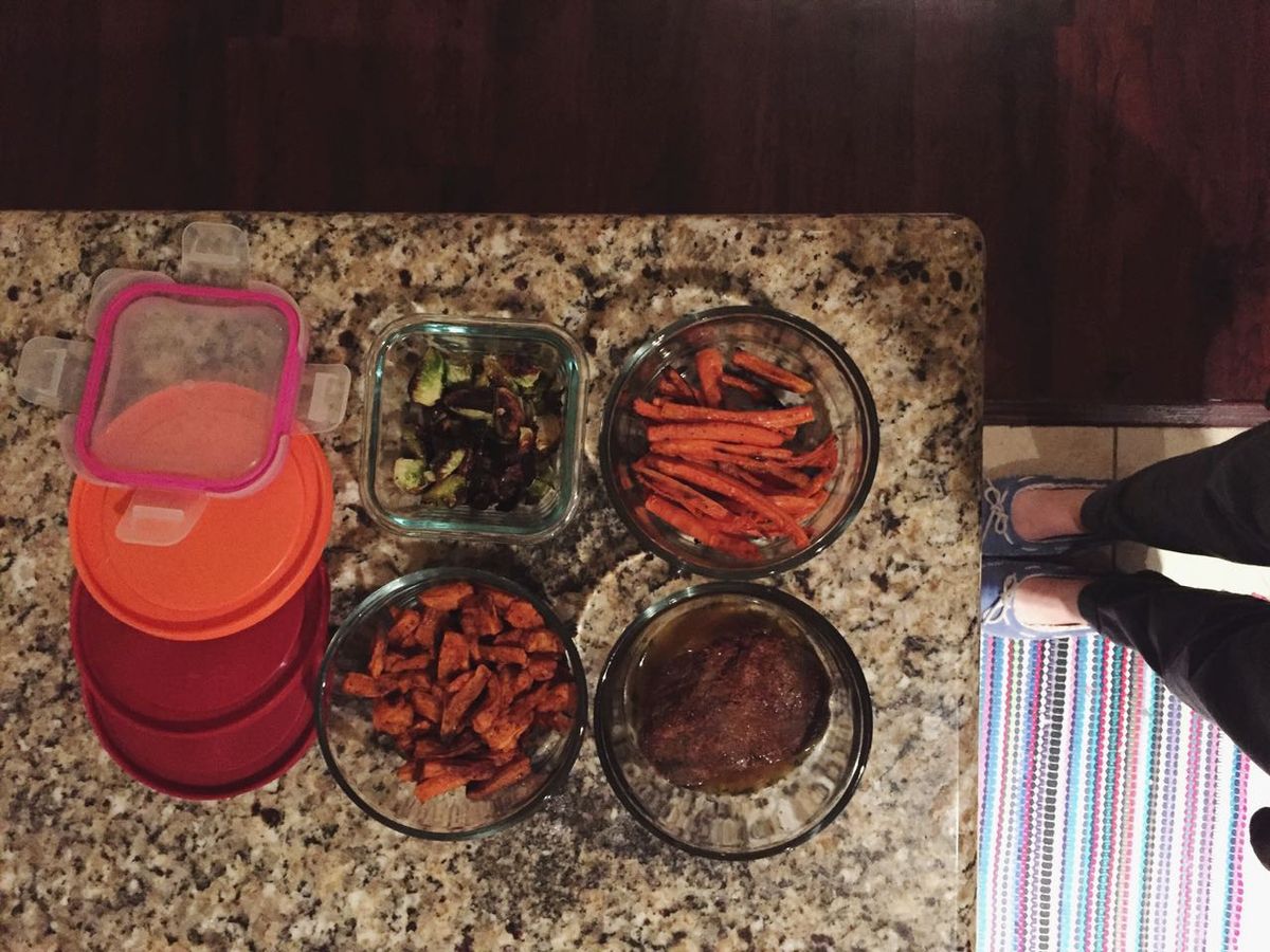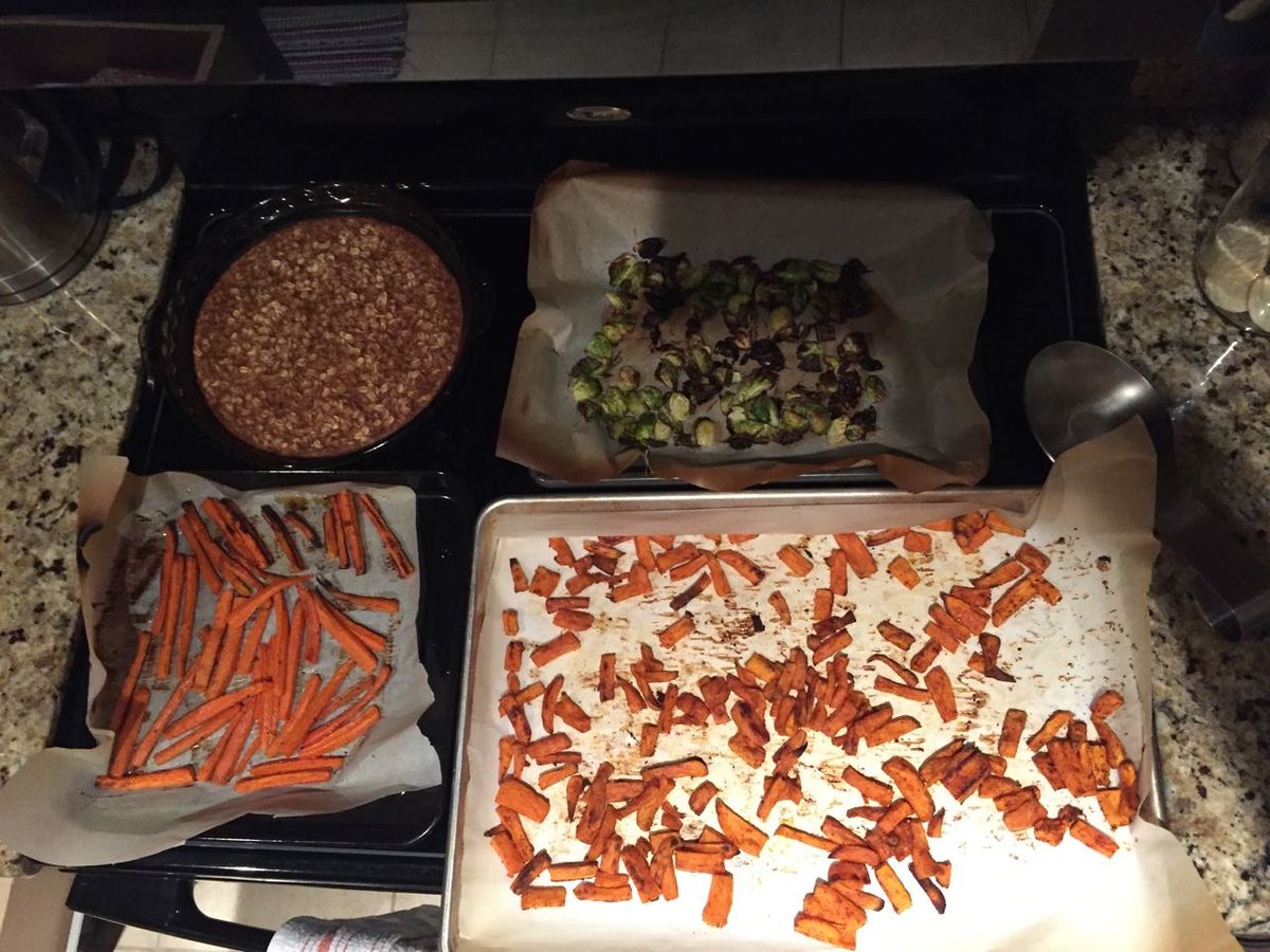 - prep and roast all the veggies to be found in the fridge and pantry: sweet potatoes, carrots, brussels sprouts
