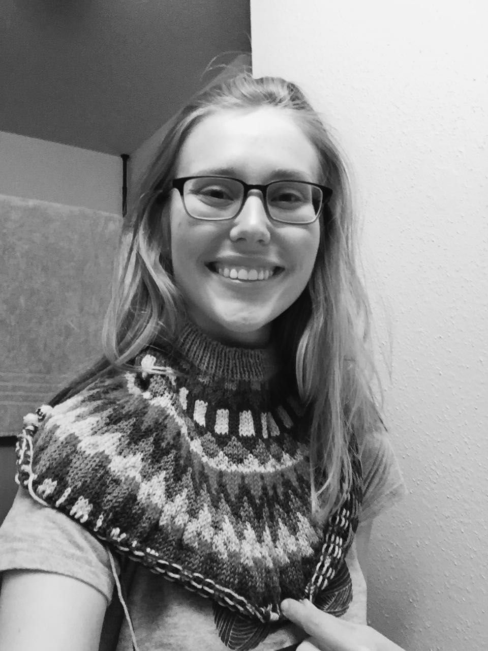 - text your knitting friends pictures of your partial sweater, modeled, in the terrible lighting