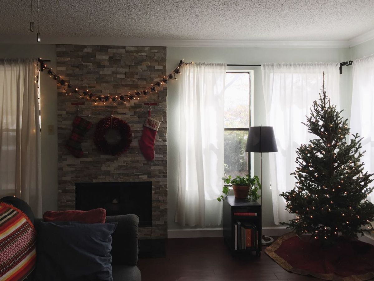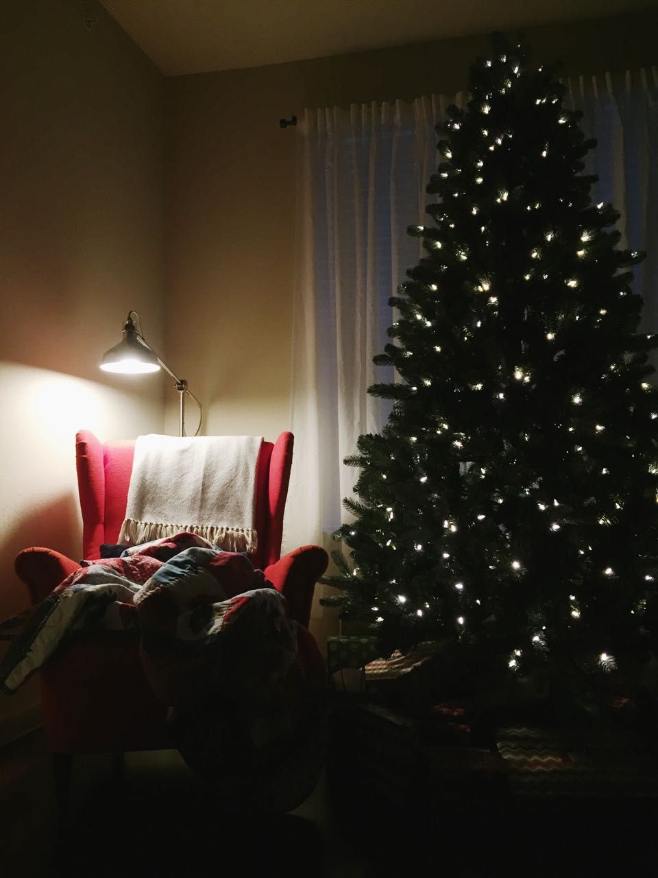 I've been curling up in the red chair by the tree, first thing in the morning, before or right after I make coffee.