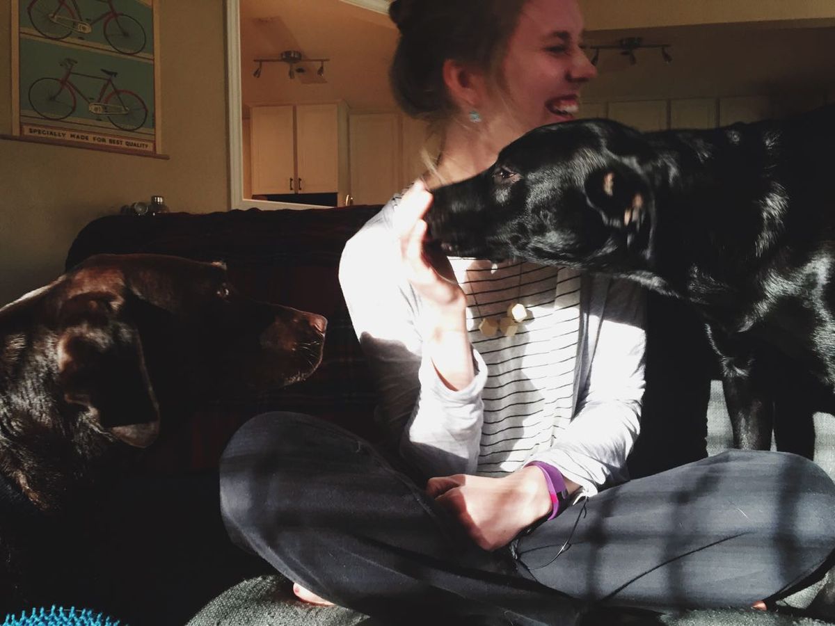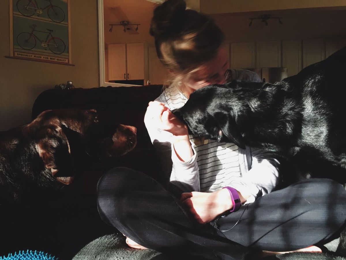 - snuggling with a sleepy puppy