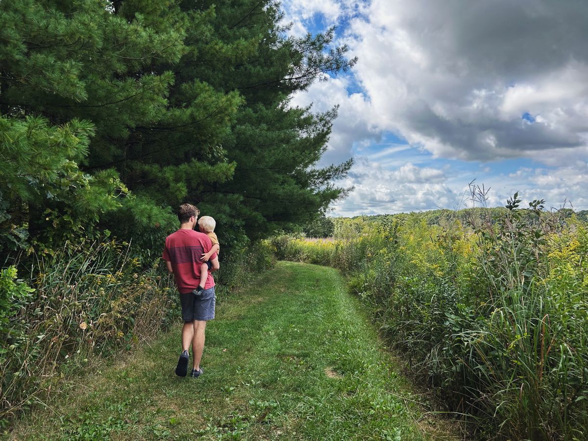 We spent several days together, doing lots of little local things. We went for a hike and (of course) saw the model trains at our local arboretum. Cooper hiked the whole way, and Finn fell asleep in Nicholas' arms. We ate sourdough chicken pot pie and homemade raw milk ice cream. Nicholas and Andrew chopped firewood, while Cooper regularly checked on a toad he was convinced was stuck in a hole in the yard (the toad did come out and an overjoyed Cooper did hold him for awhile).