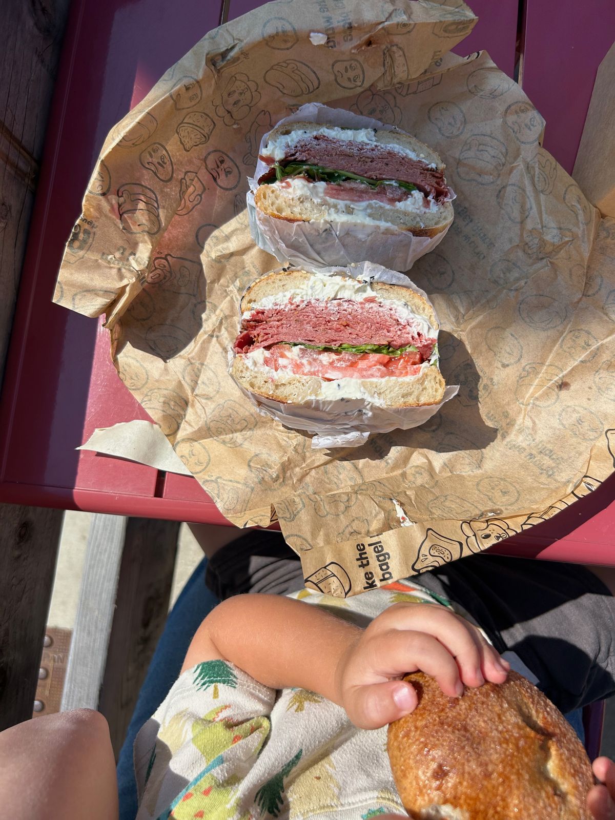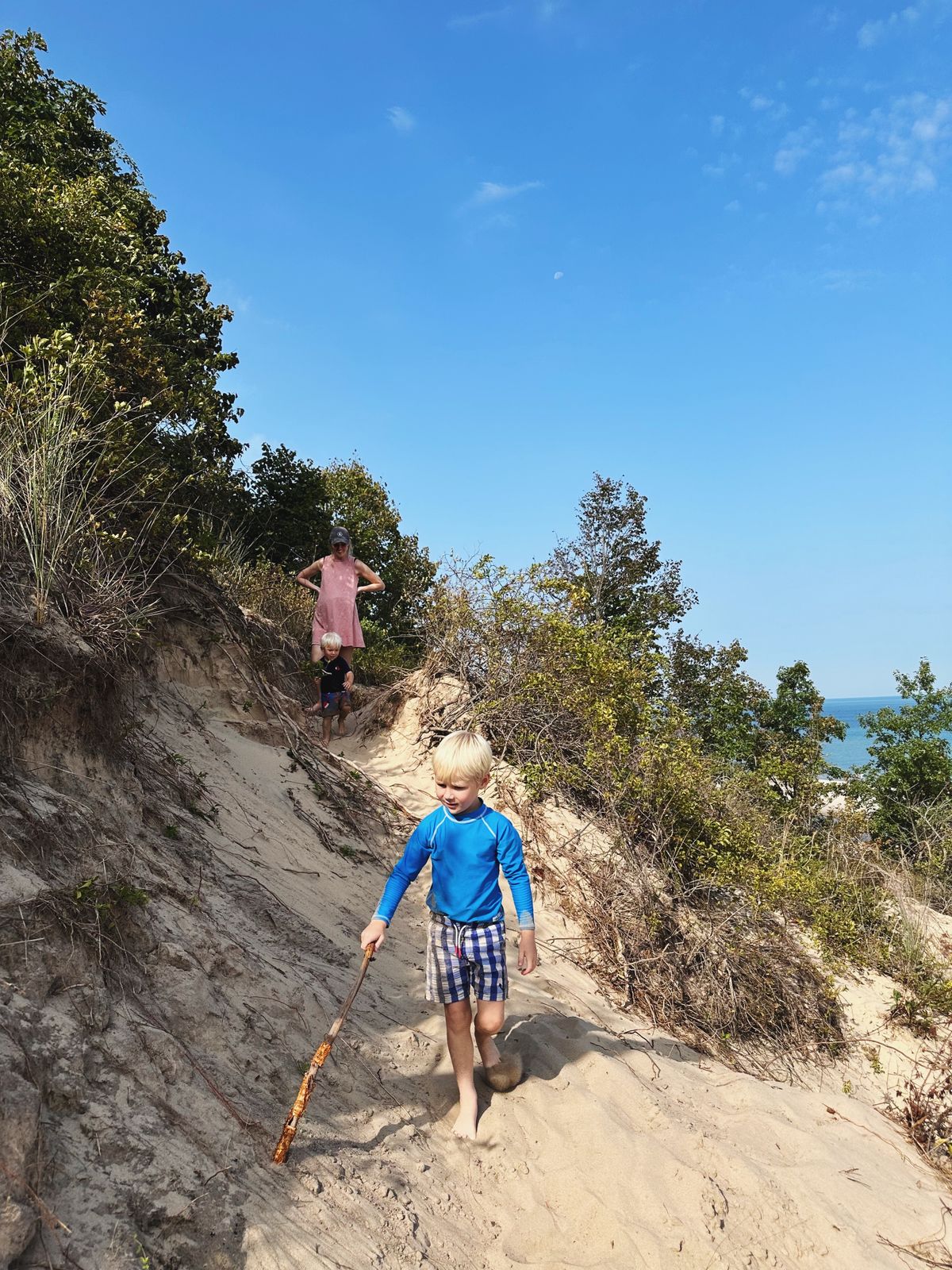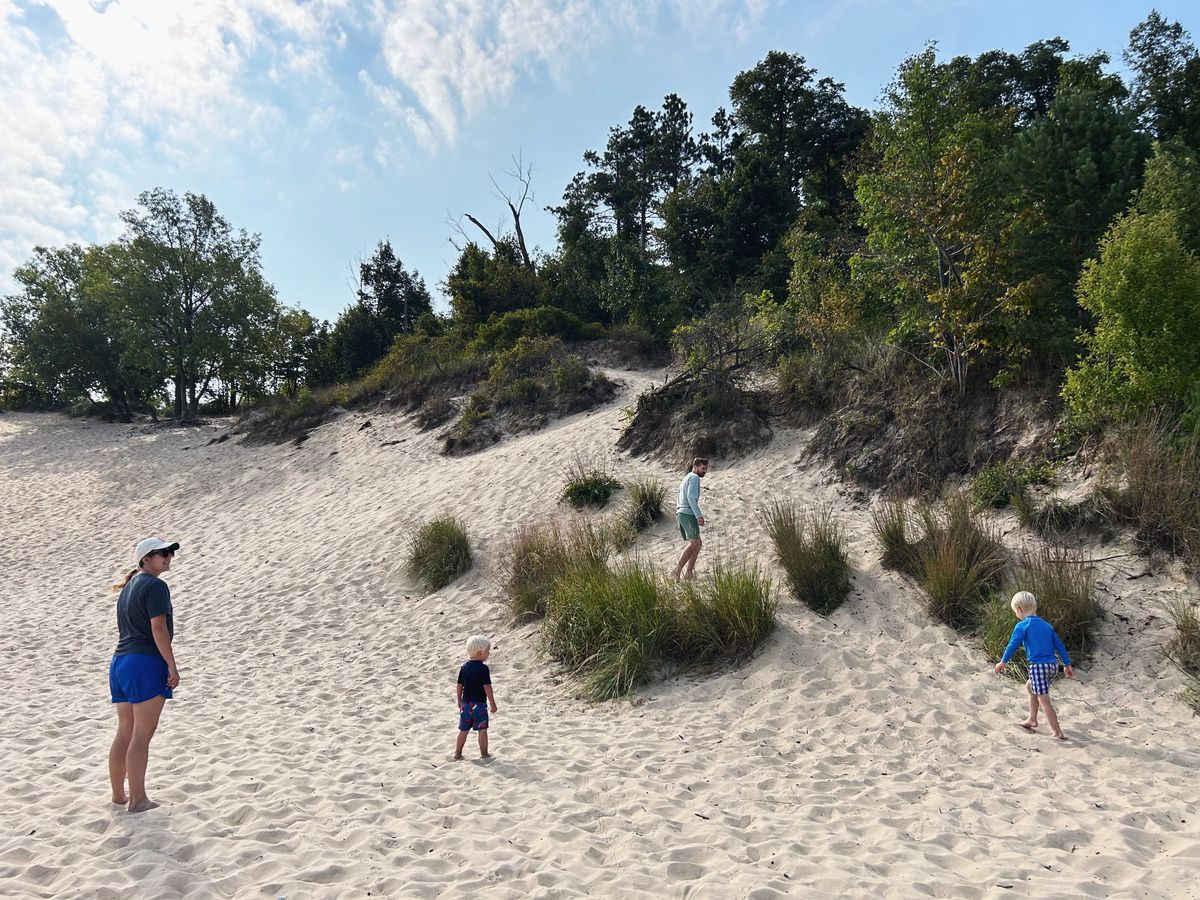 On Saturday, we all headed to the beach. It was a beautiful morning, and the boys played in the sand and rocks and water, we all hiked up a sand dune, and we ate sourdough bagel sandwiches on the beach. After a little time at home, Rachael and the boys and I headed to our downtown for coffee and a visit to a local bakery. And for dinner, we had hamburgers on sourdough buns. That evening, it was particularly cool, and after the kids were asleep, Rachael and I sat outside on the deck, sweatshirts on, tea in hand, and had a chance to catch up even more. We parted ways the next morning, as she flew home to her beautiful family.