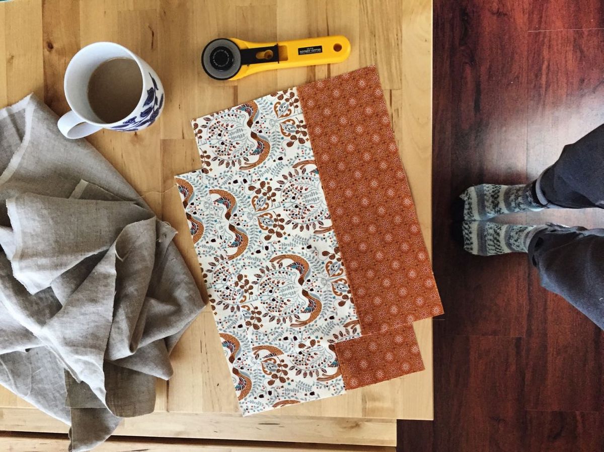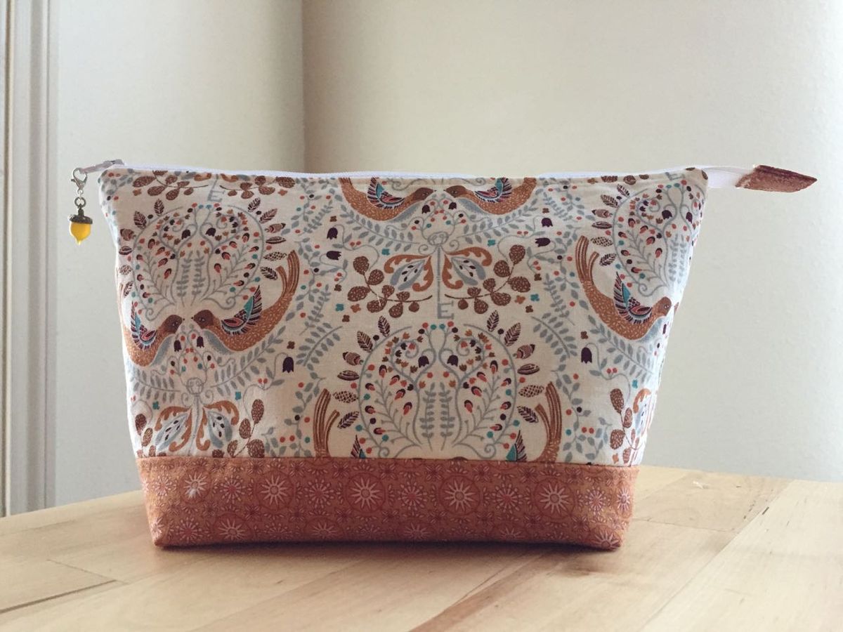 Sewing another zippered project bag. These are so fun to make! And honestly, between these bags and the quilt, I'm feeling much more comfortable behind the sewing machine. I used the Open Wide Zippered Pouch tutorial by Noodlehead, and this pouch is the medium size.