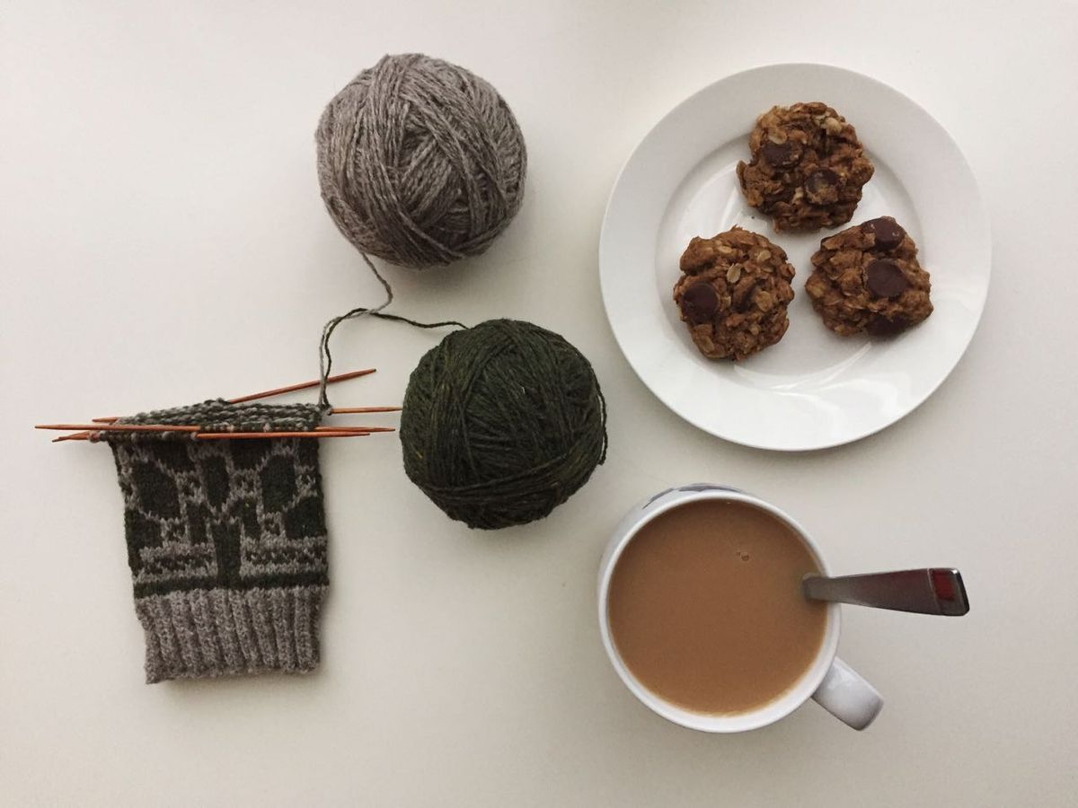 Fika, with tea and oatmeal chocolate chip cookies. This time, I added cinnamon to the cookies for a little extra warmth.
