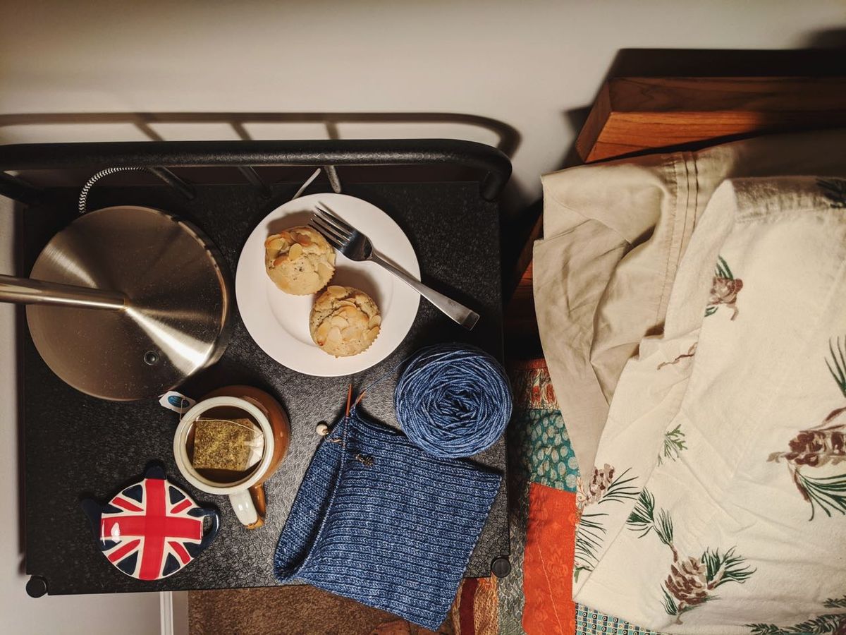 Bedtime fika with tea and muffins.