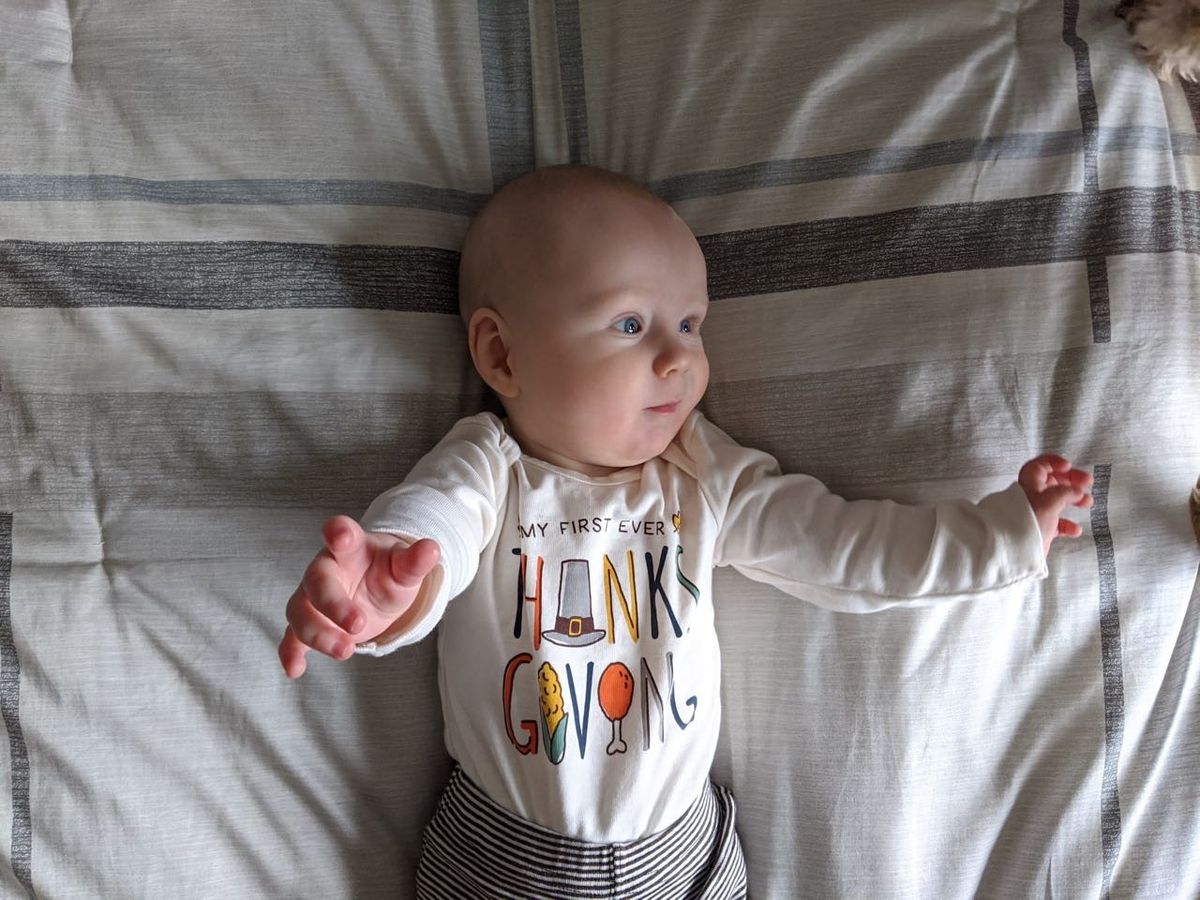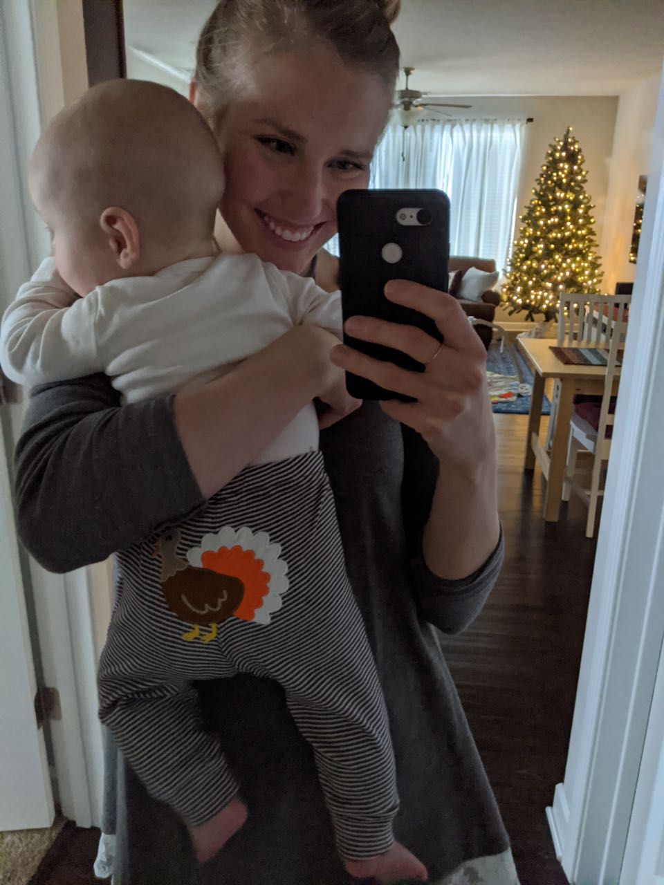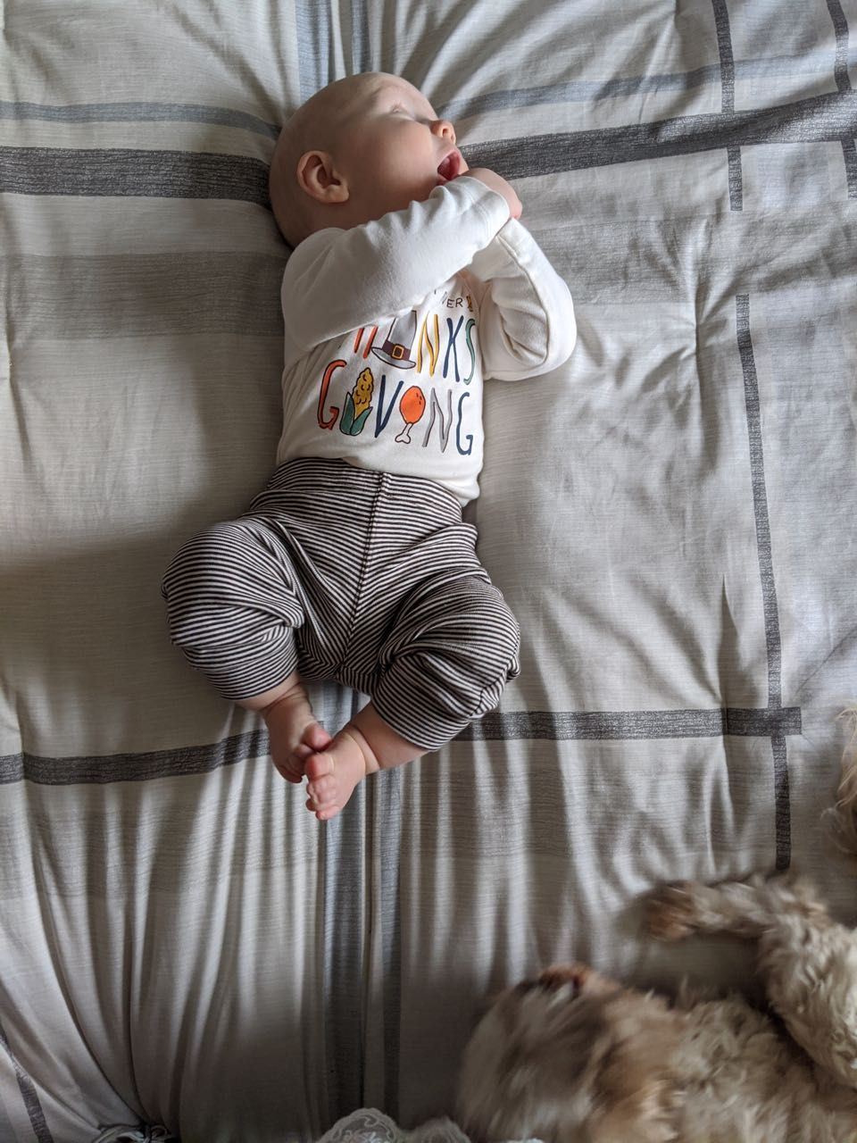 A wonderful and laidback Thanksgiving at my in-laws. I brought a ham, brussel sprouts, and gf stuffing. And we also had turkey, mashed potatoes, sweet potatoes, green bean casserole, cranberry sauce, gf coffee cake, and pumpkin pie. Cooper took a great two-hour nap while we ate, too, and Nicholas and his dad watched the football game.