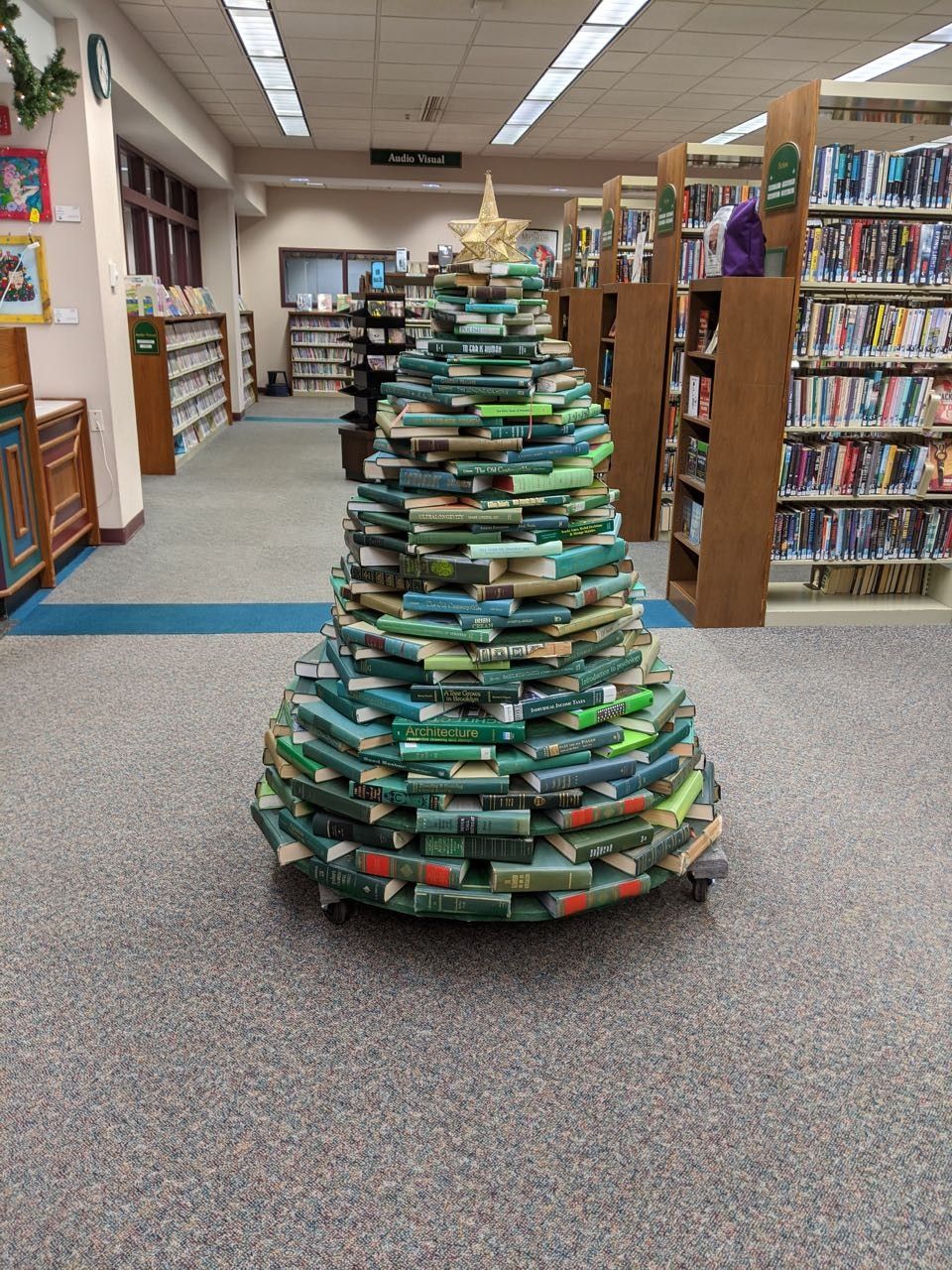 Trips to the library with a baby! At the rate with which we read books with Cooper, I so appreciate the children's section at our local library. I love reading with him. We checked out some Christmas books for us to read together, and I got some books on baby-led weaning. And we saw a Christmas tree made out of books(!)