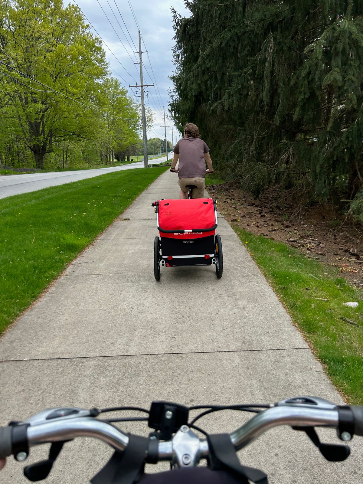 - Our first family bike ride where everyone came along! When my parents and brother visited a few weeks ago, they were able to squeeze my bike into their car. And now that Finn is now big enough to fit in the bike trailer next to Cooper, all of us went on a bike ride together this past weekend. Cooper had fun snacking and pointing out things he saw outside, and Finn fell asleep, so I'd say it was a success. I'm excited for many more bike rides.