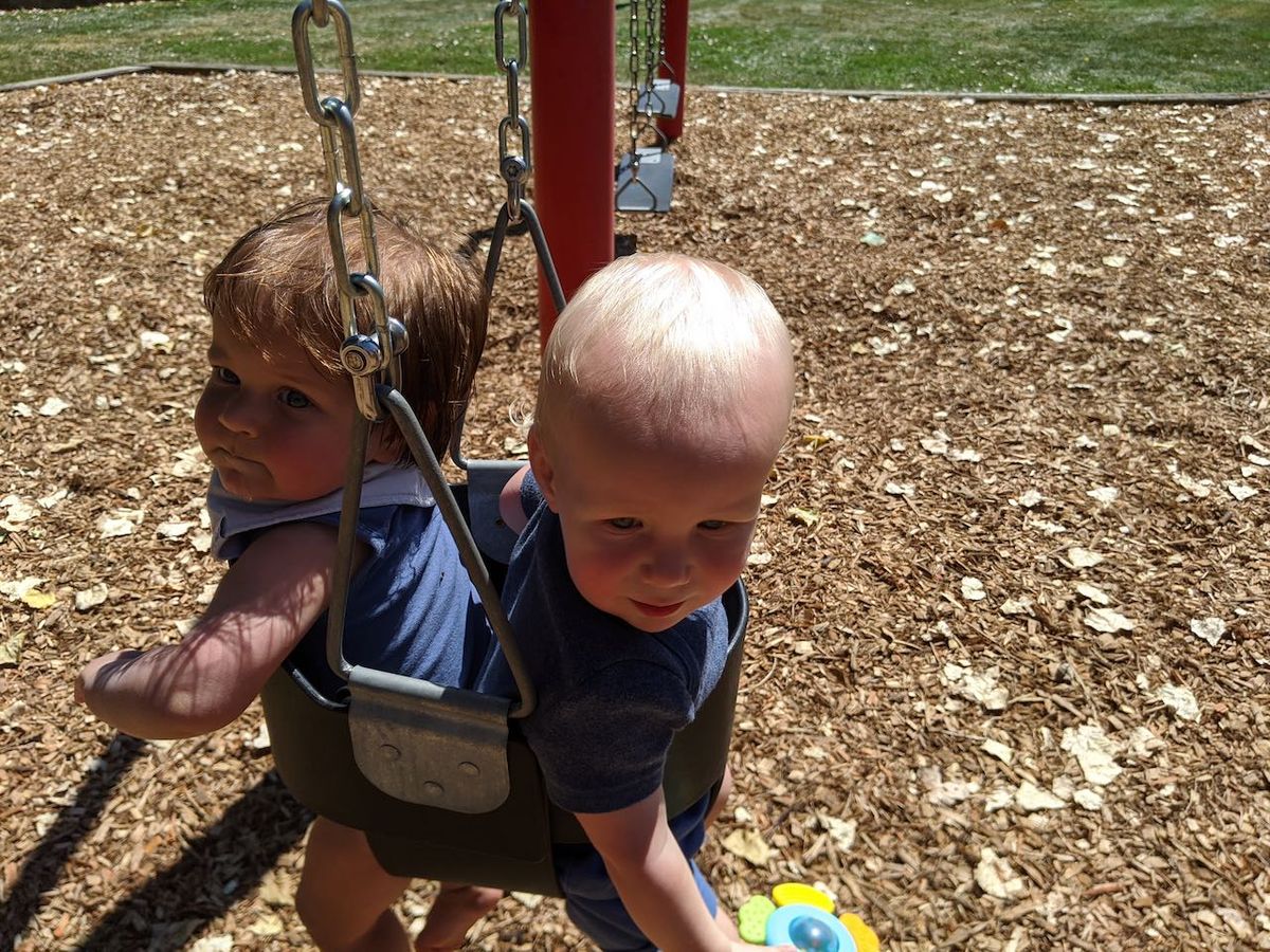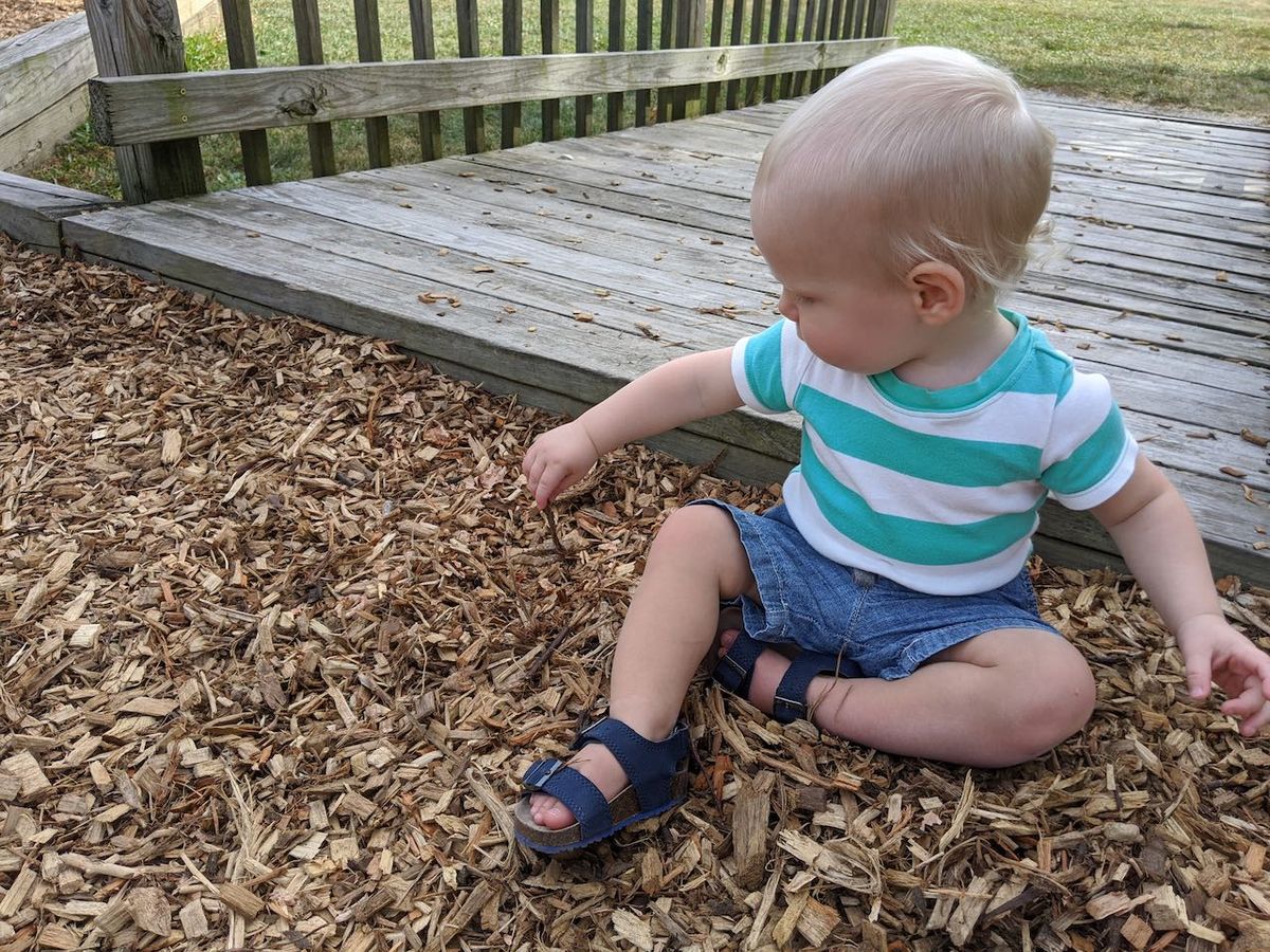 Trips to the local playground. Cooper can crawl up the playground (I'm within arms reach, naturally) and then he gets excited to go down the slides. He often says "Weeeeee" as we go down. And then he points to the "start" to do the same routine again. So fun. He also loves the swings.
